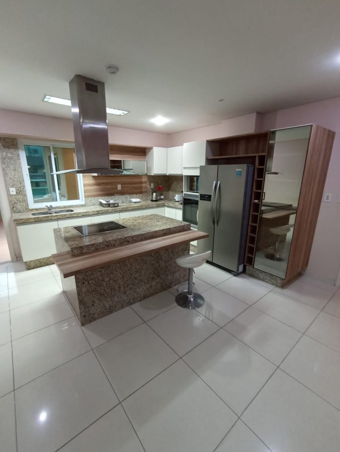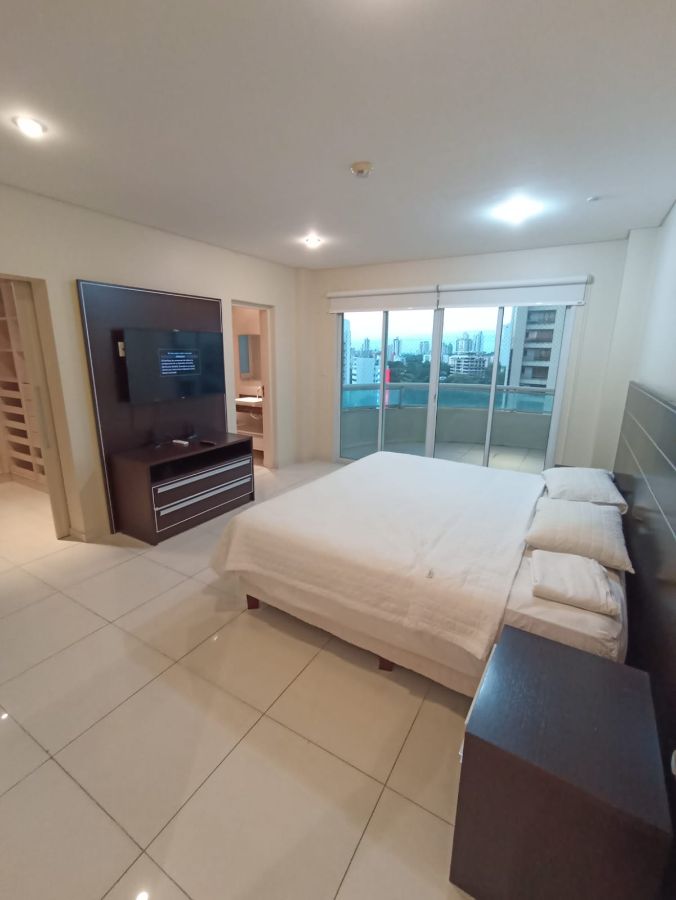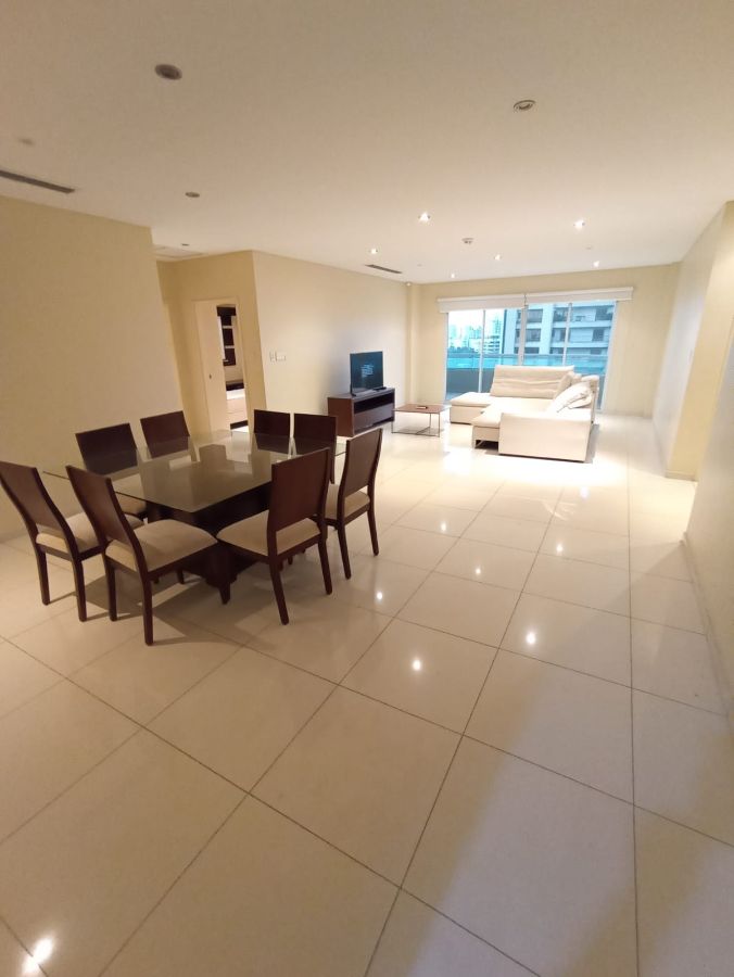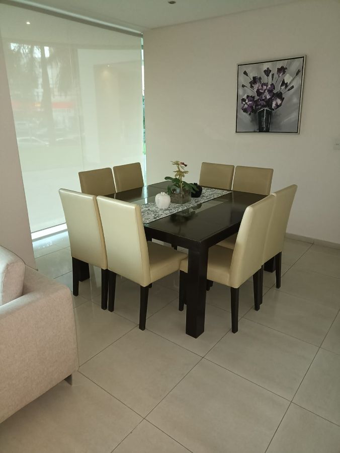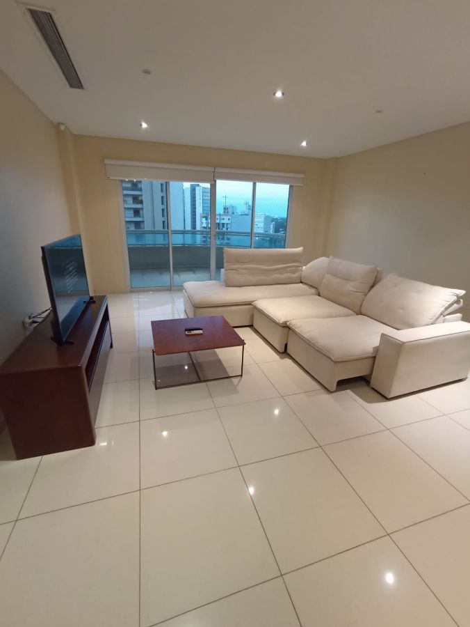 Doble acceso: principal y de servicio, depto con A/A en todas las áreas, buena iluminación natural en todo el departamento, Living, comedor, Baño social, Master suite con vestidor y baño con jacuzzi, 2 habitaciones en suite, 1 habitación, puede ser escritorio o para TV, 3 balcones amplios, Cocina amoblada, con isla y mesón de mármol, Balcón con parrilla, Área de servicio con habitación y baño, Cocheras para 2 vehículos.