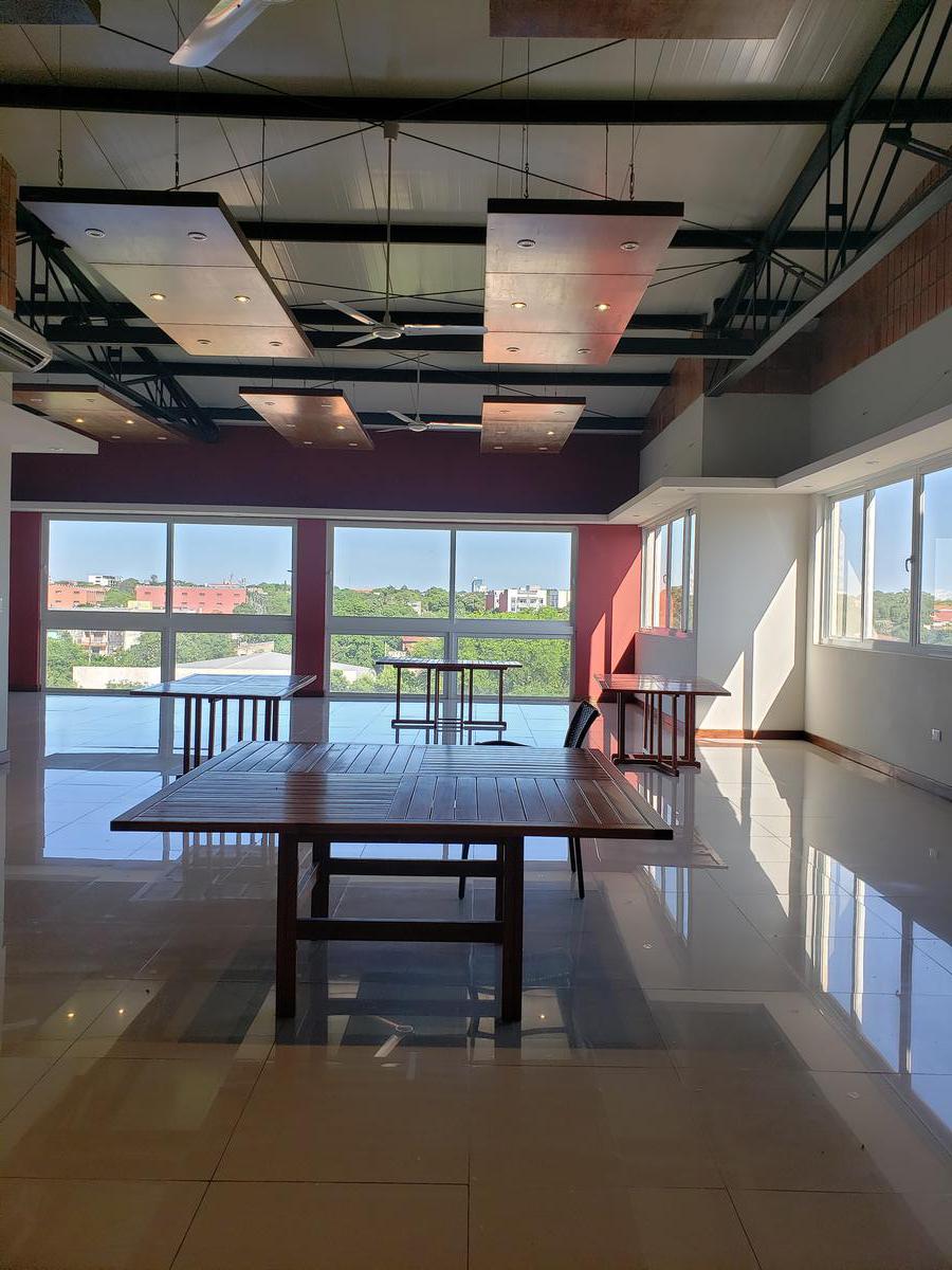 Quincho con parrilla, baños sexados, y salón multiuso climatizado en el 4to piso para reuniones sociales con sillas y mesas para 25 personas.