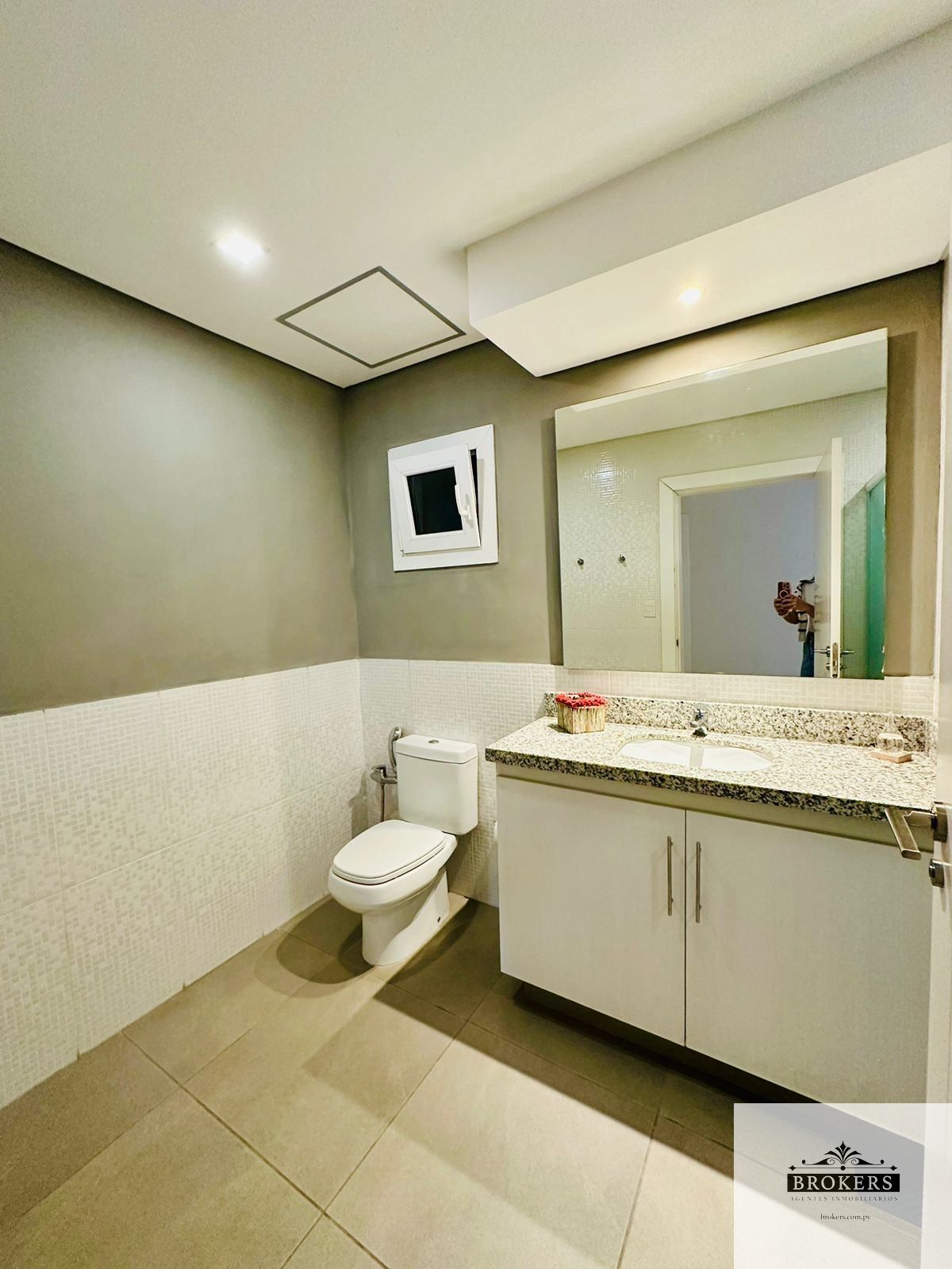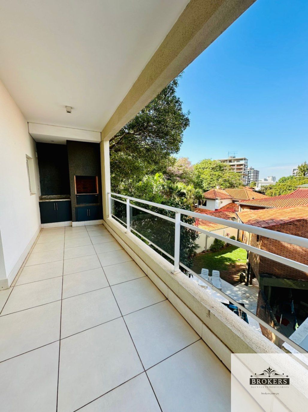 Dos dormitorios, uno en suite con vestidor y balcón, el otro con baño familiar/social, sala-comedor, amplio balcón con parrilla, cocina amoblada, lavadero y una cochera en planta baja.