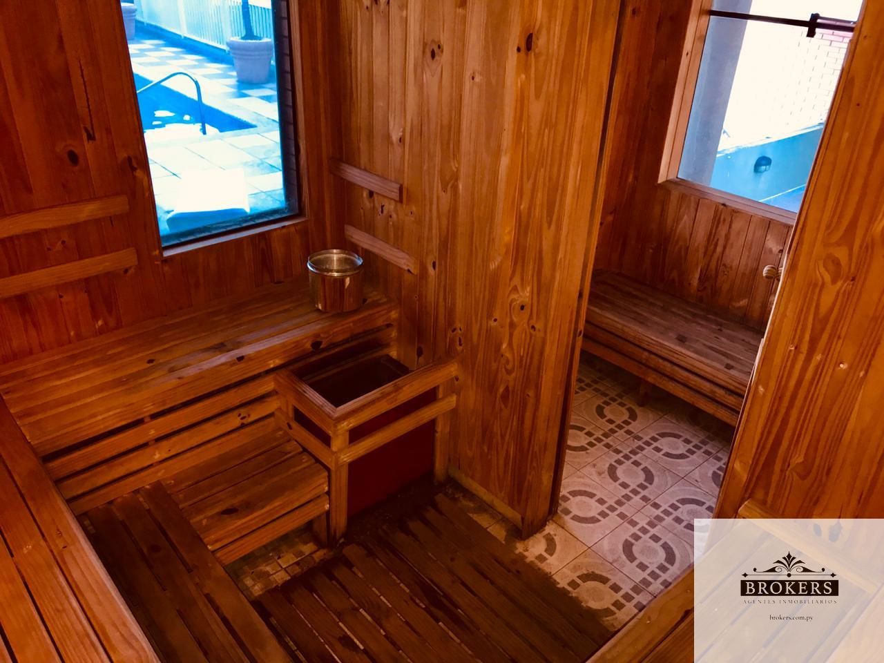 – Área social con amplio Quincho techado con Baños sexados, parrilla, piscina al aire libre, sauna suizo seco y Baños con ducha.