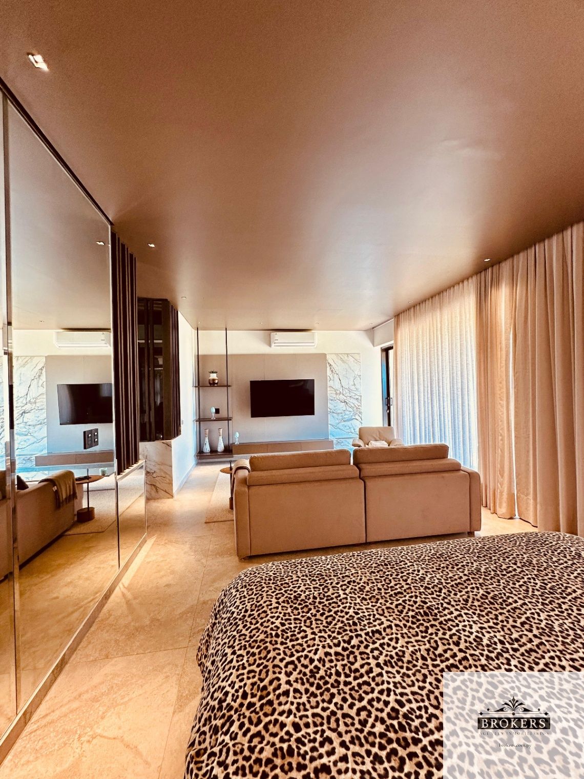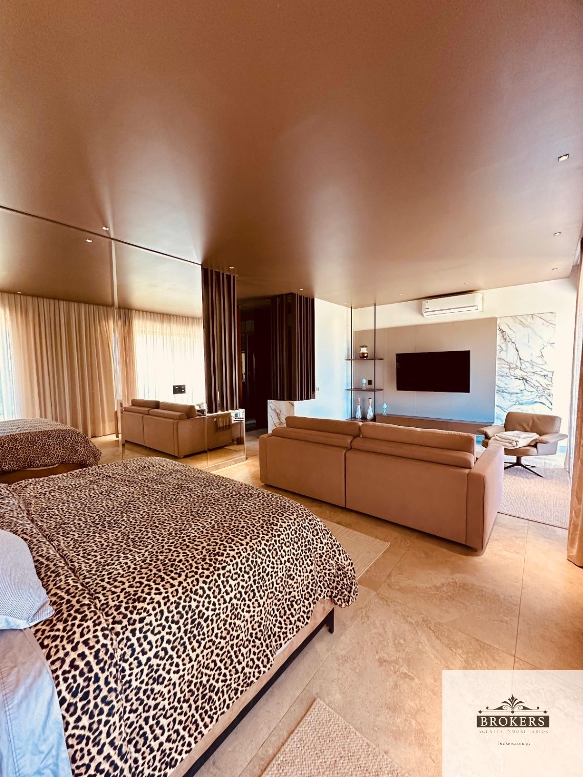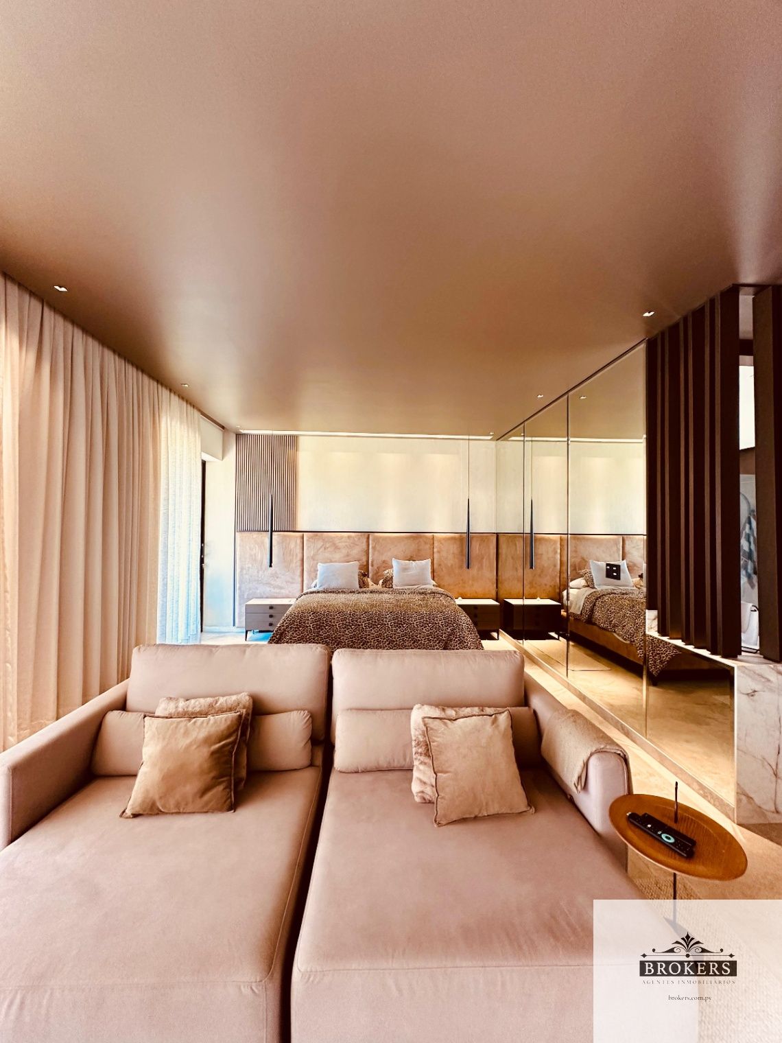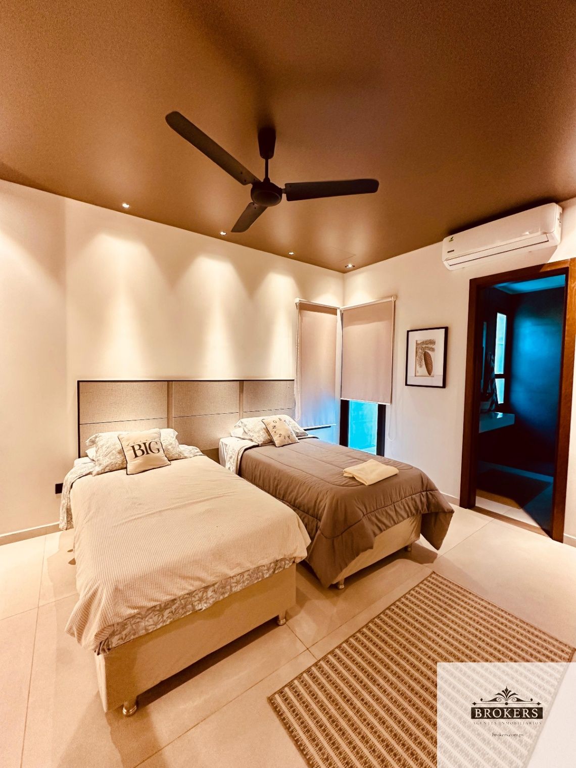 Nivel inferior: Sala de estar, 3 dormitorios principales en suite, la master suite con ante baño, tina y vestidor, la habitación principal tiene salida al patio y área de servicio completa con lavadero y baño.