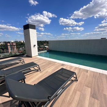 El edificio cuenta con: Portería 24 hs, Lobby, Terraza con Parrilla, Baño sexado, Gym, Ascensor Panorámico, Ascensor de servicio.