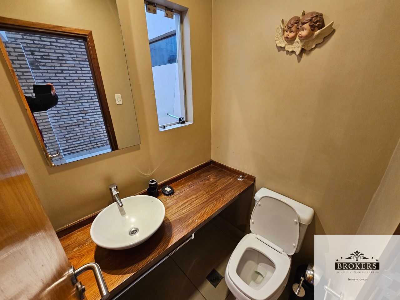Planta baja: Living comedor amoblado y equipado con cocina integrada, baño social, pequeño patio, pequeño lavadero, 1 cochera bajo techo.