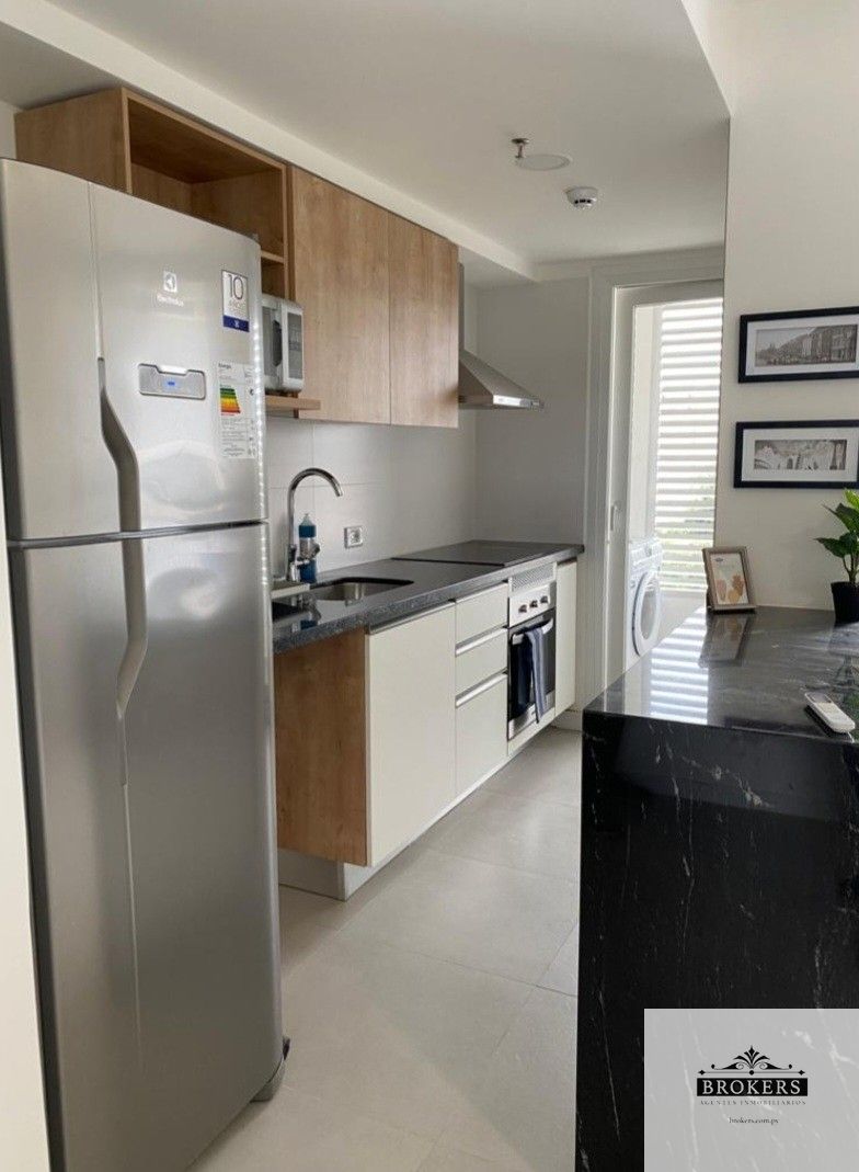 El departamento cuenta con un dormitorio, balcón con grill, living comedor con cocina integrada, amoblada y equipada con anafe, campana, horno eléctrico, una cochera.
