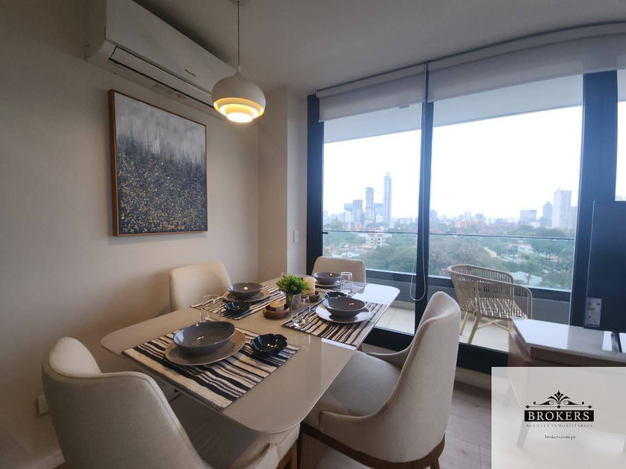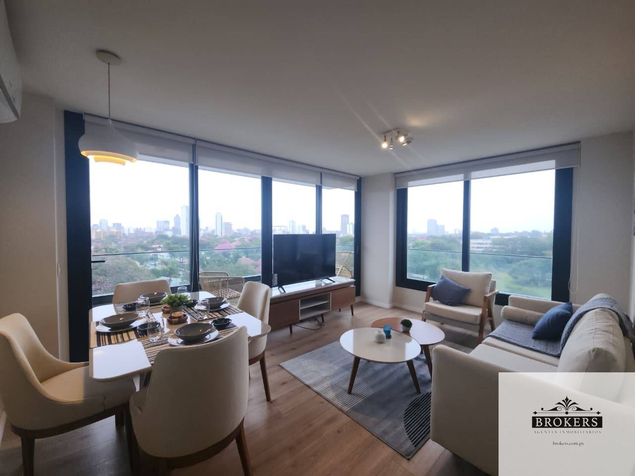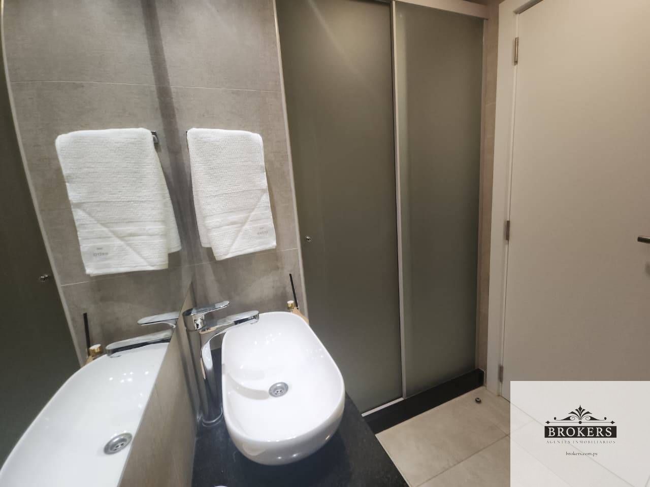 El departamento cuenta con 2 dormitorios, el principal en suite, un baño social, Estar y comedor, Cocina semi integrada (horno, anafe y purificador), Lavadero, Balcón, En todas las áreas del depto. incluye sistemas de A.A. Muebles de la marca Achon en cocina y placares.