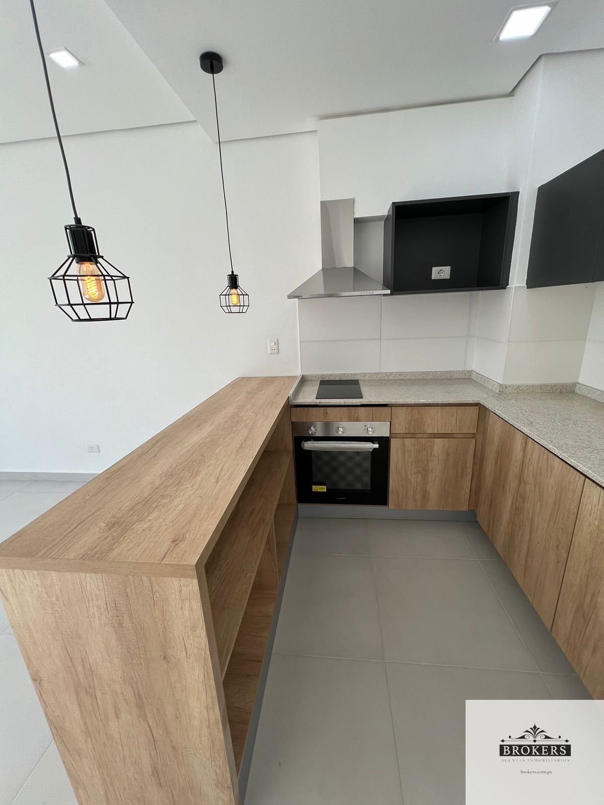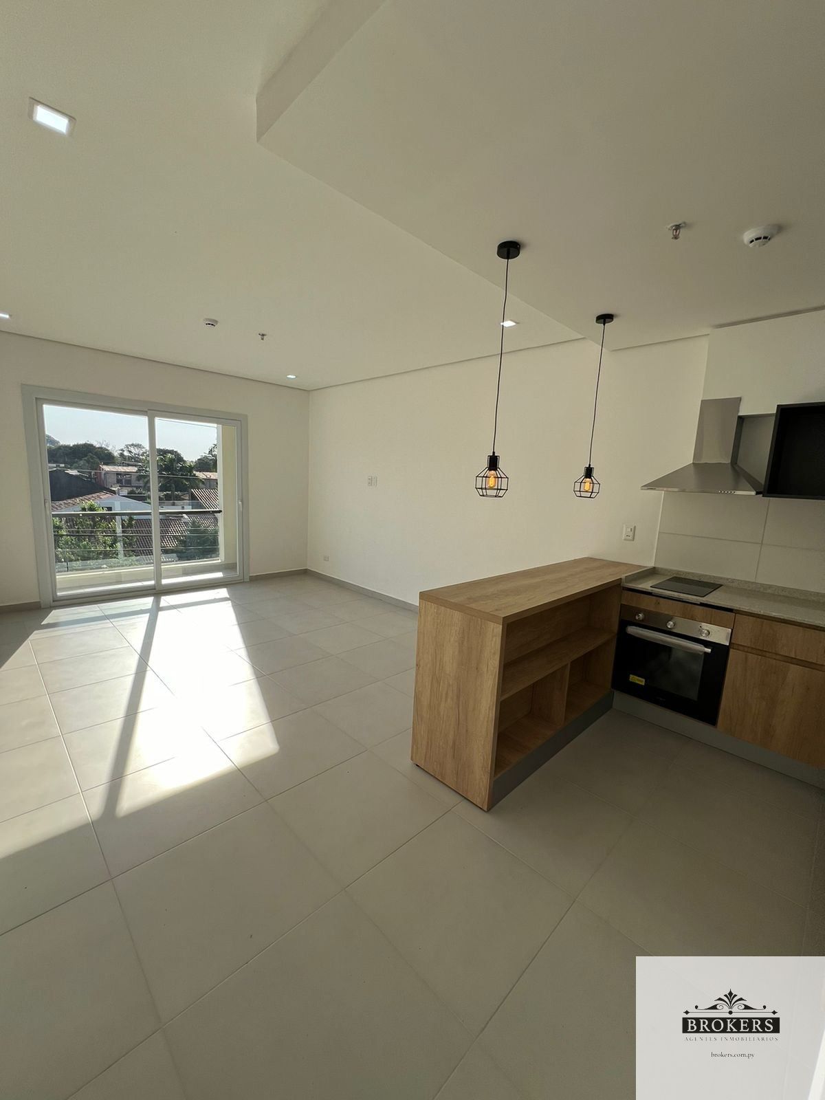 El departamento cuenta con living comedor, con cocina amoblada y equipada con anafe, purificador, 2 dormitorios, el principal en suite, baño social, una cochera.