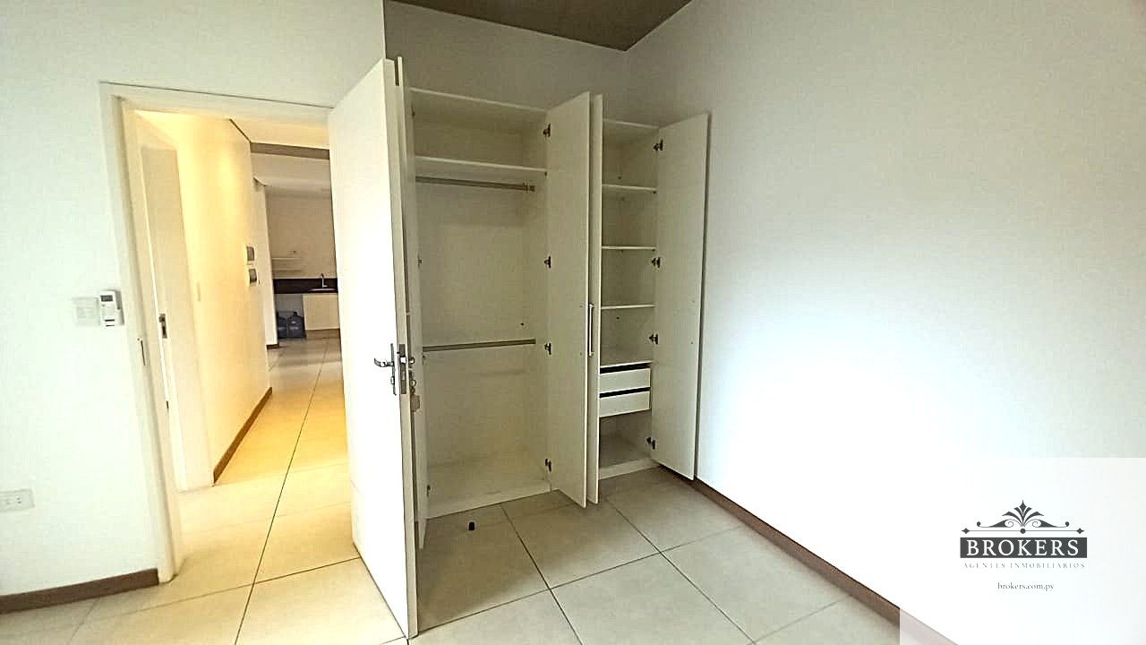 Alquilo departamento de dos dormitorios con dos cocheras, ubicado sobre la calle Facundo Machain, Barrio Luis A. de Herrera. El dormitorio principal tiene un balcón amplio. Los dormitorios cuentan con placares y aire acondicionado y cortinas antisolares. Cuenta con un baño familiar. La sala comedor tiene balcón pequeño, cortina antisolar, aire acondicionado tipo split y una cocina amoblada con desayunador. Dispone de un práctico lavadero y dos estacionamientos: uno cubierto y el otro descubierto.