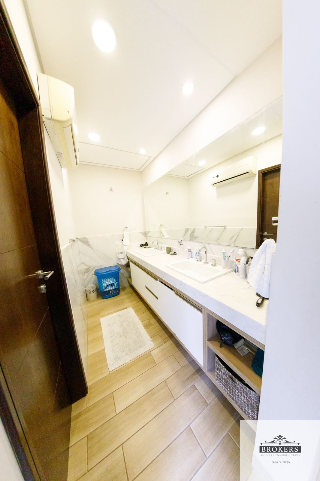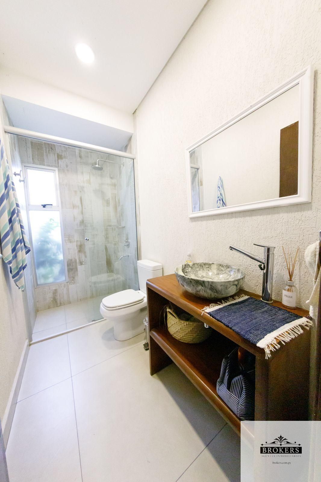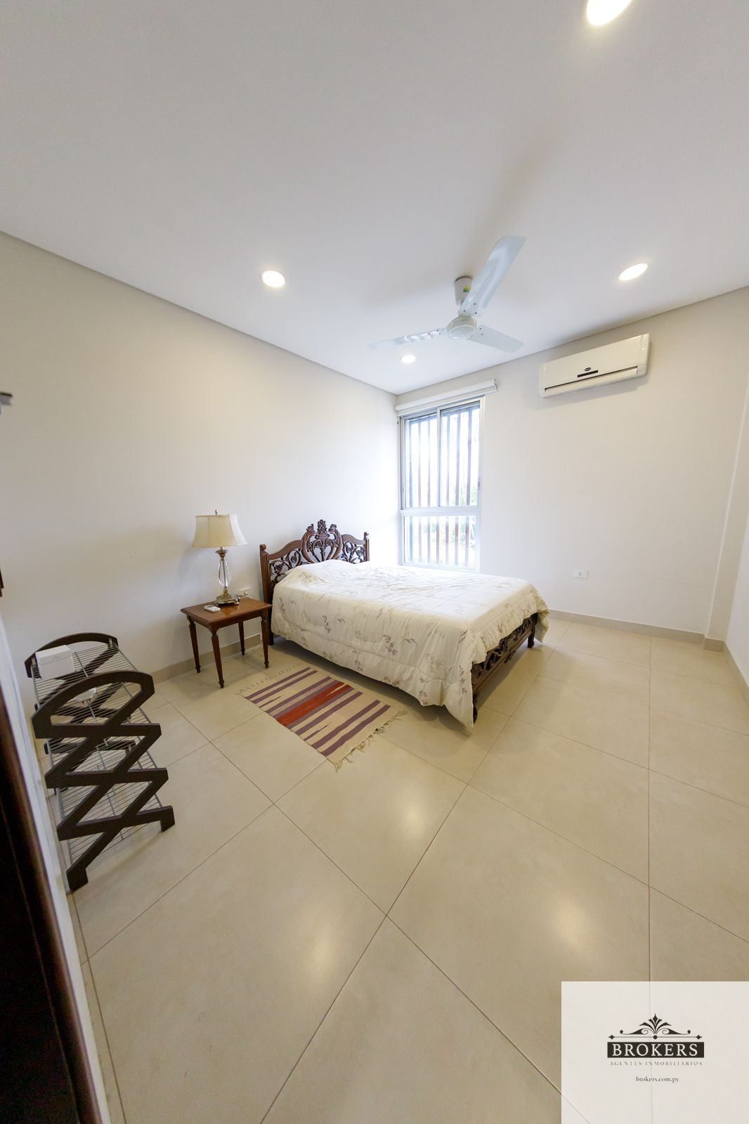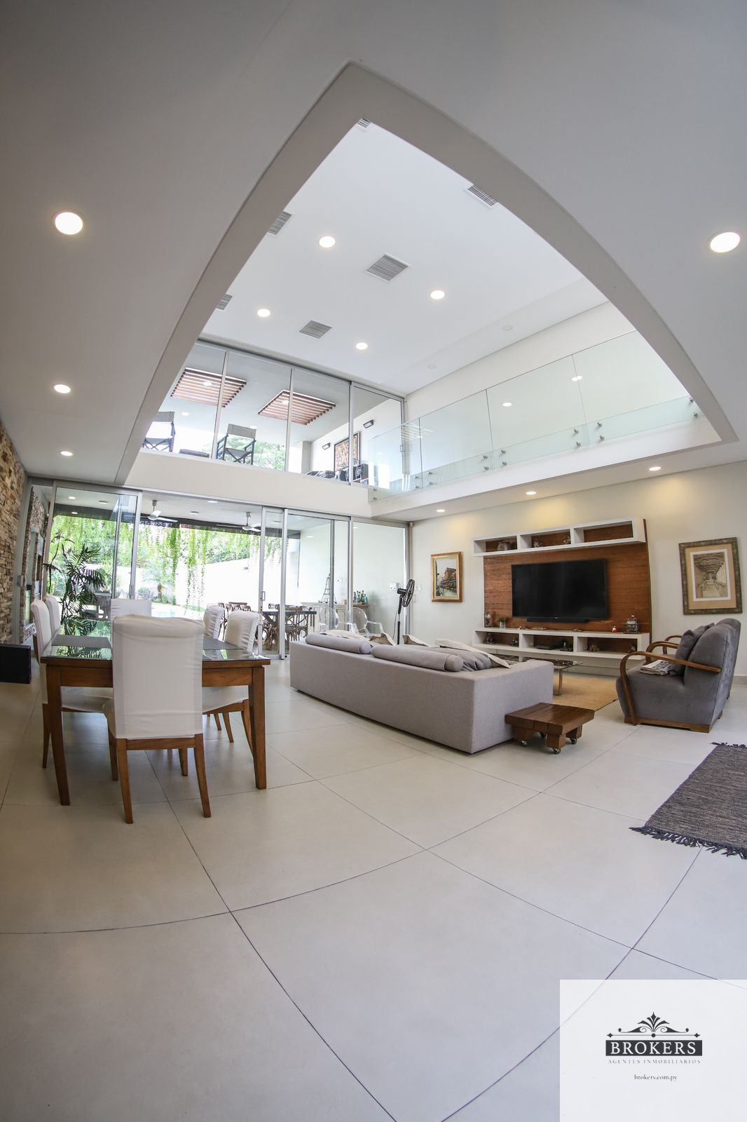 Planta baja: Sala comedor, Baño social, Escritorio, Cocina amoblada, Galería con baño, Patio, Piscina, Área de servicio con dormitorio y baño, Lavadero, Deposito, Estacionamiento para 4 vehículos, 2 de ellos techados.