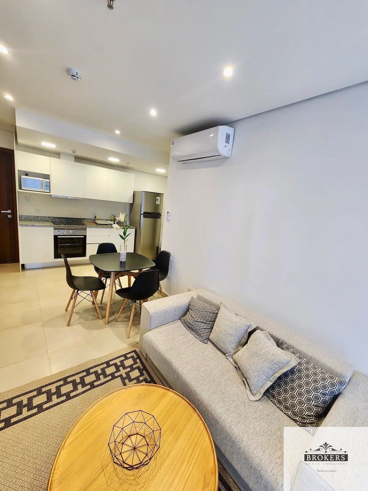 Cuenta con Amplio departamento de 2 dormitorios totalmente amoblado, cuenta con 2 baños, estar/comedor y balcón, Incluye una cochera.