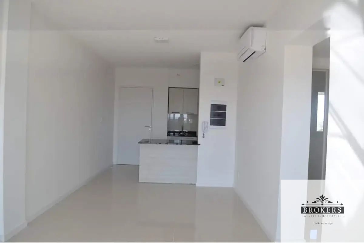 Dos dormitorios uno en suite, cocina amoblada integrada a la sala comedor con balcón, lavadero pequeño independiente.