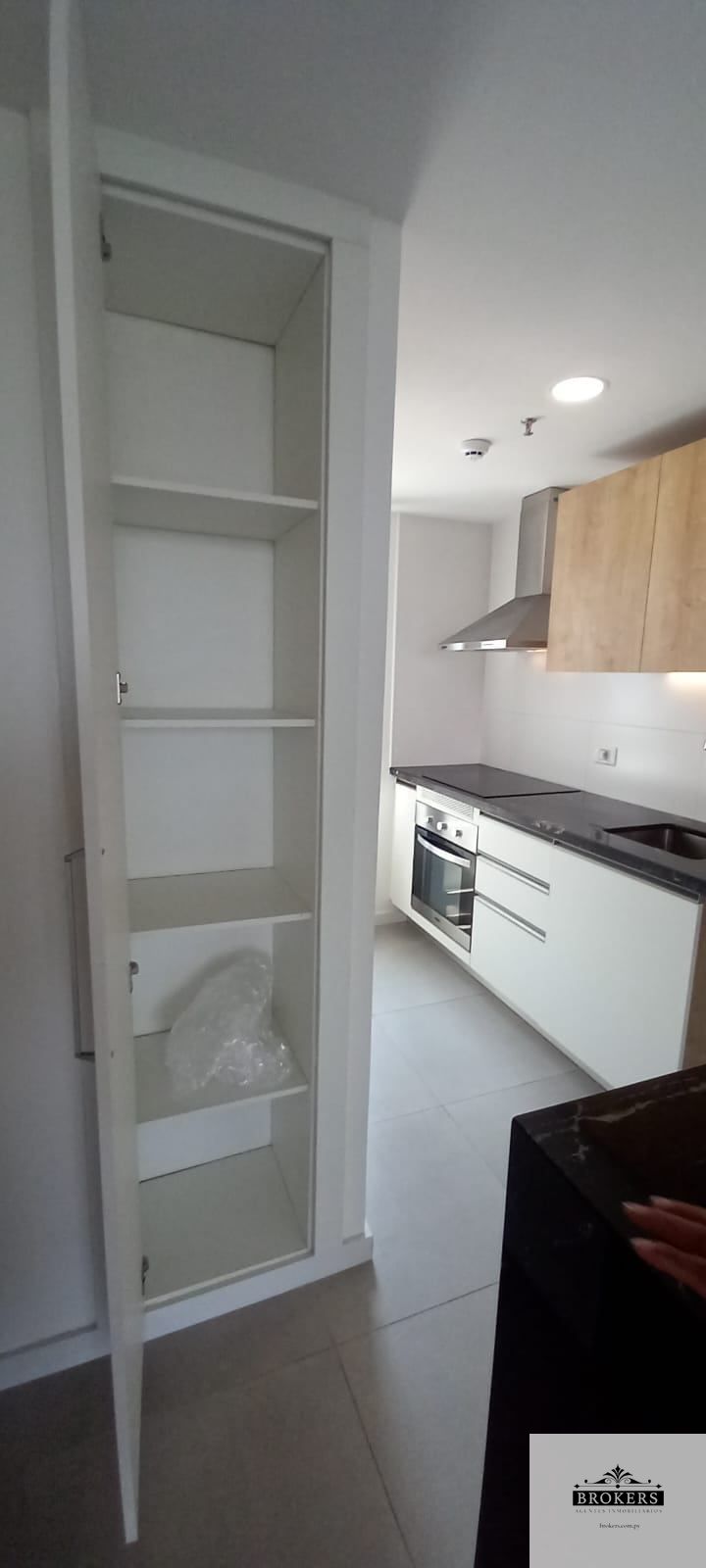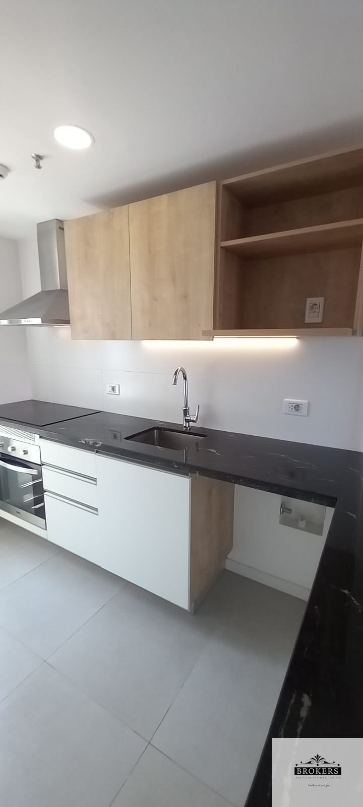 Cocina amoblada y equipada sin cubiertos ni vajillas. Tiene lavarropas, heladera y microondas a estrenar.