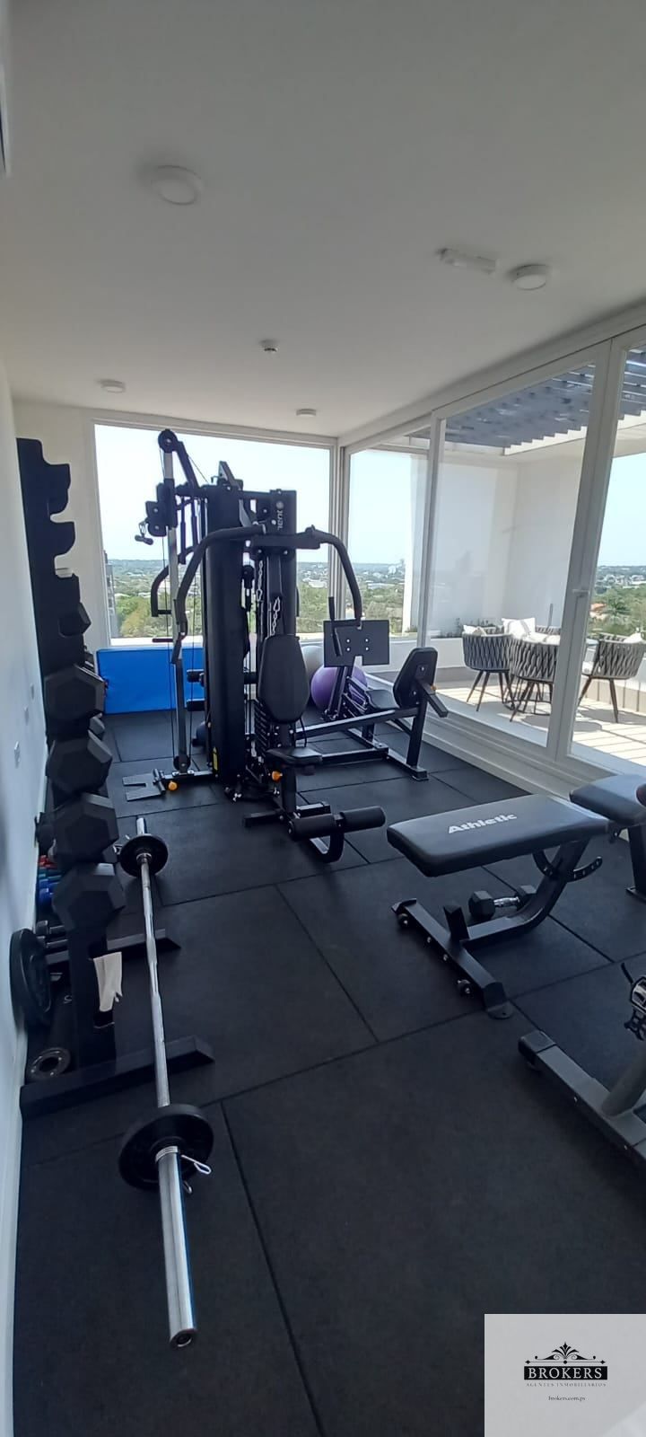 La unidad cuenta con: aire acondicionado, cocina con barra, mesadas de granito de primera calidad, pisos y revestimientos de porcelanato, cocina equipada con horno anafe y campana, aberturas de PVC de alta performance, parrillero propio y terraza lavadero.