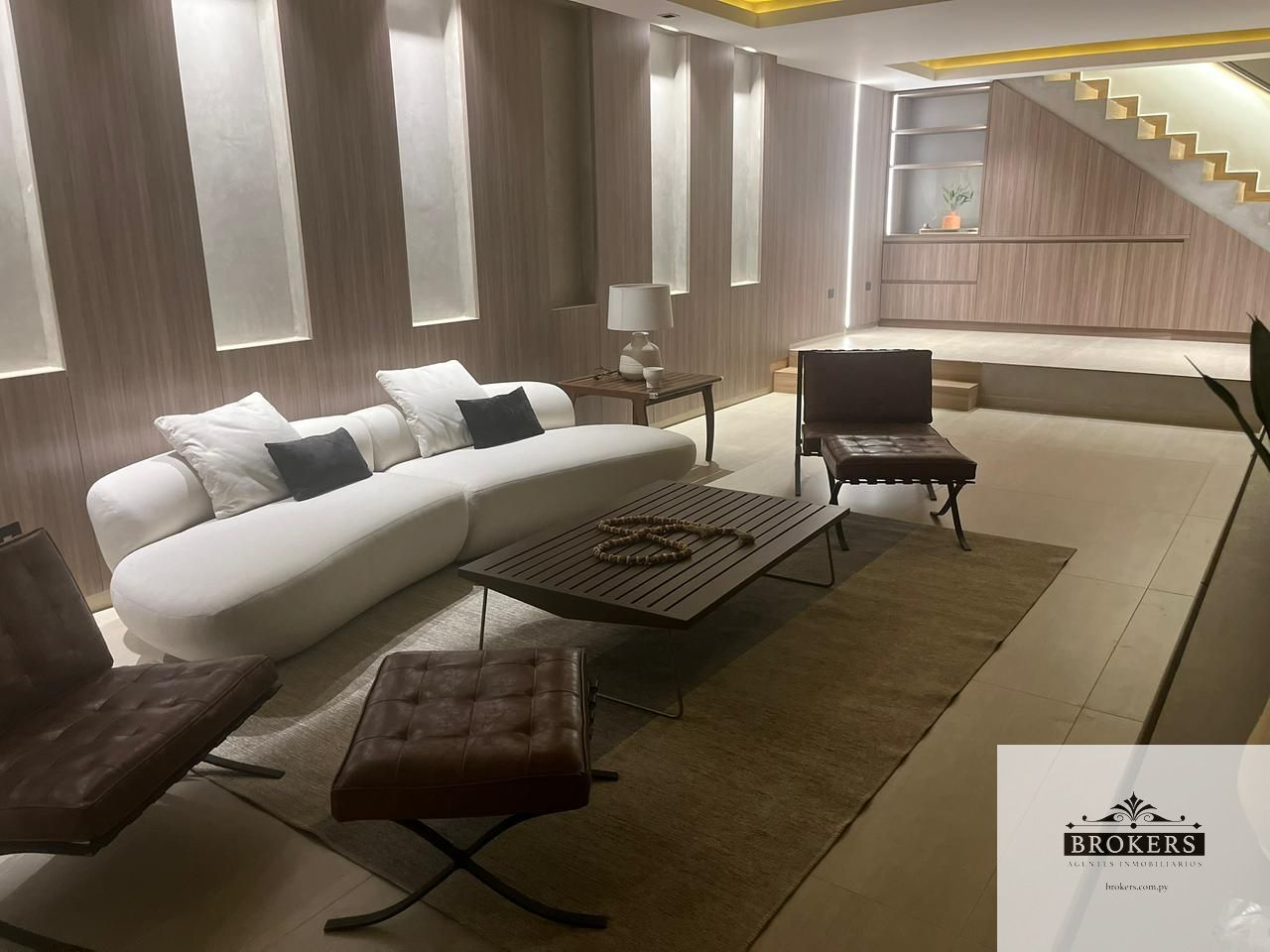 en panta baja cuenta con playroom, 3 dormitorios en suite, el principal con vestidor, área de servicio con dormitorio, baño y lavadero.