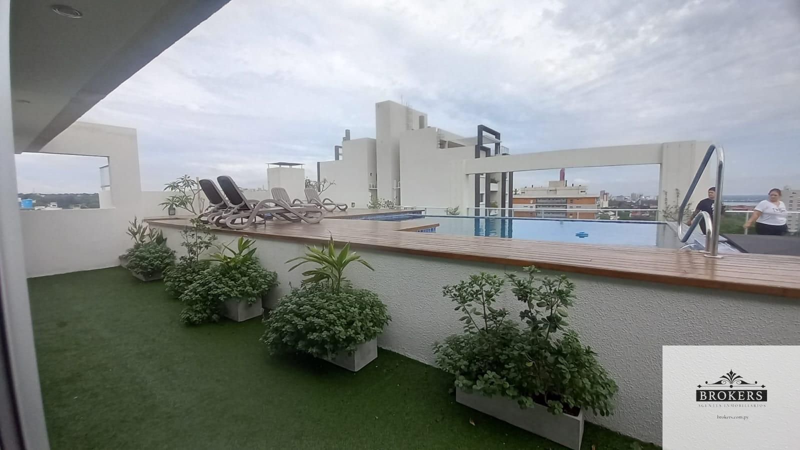 Terraza con piscina, salon multiuso con parrilla, gimnasio, hermosa vista.