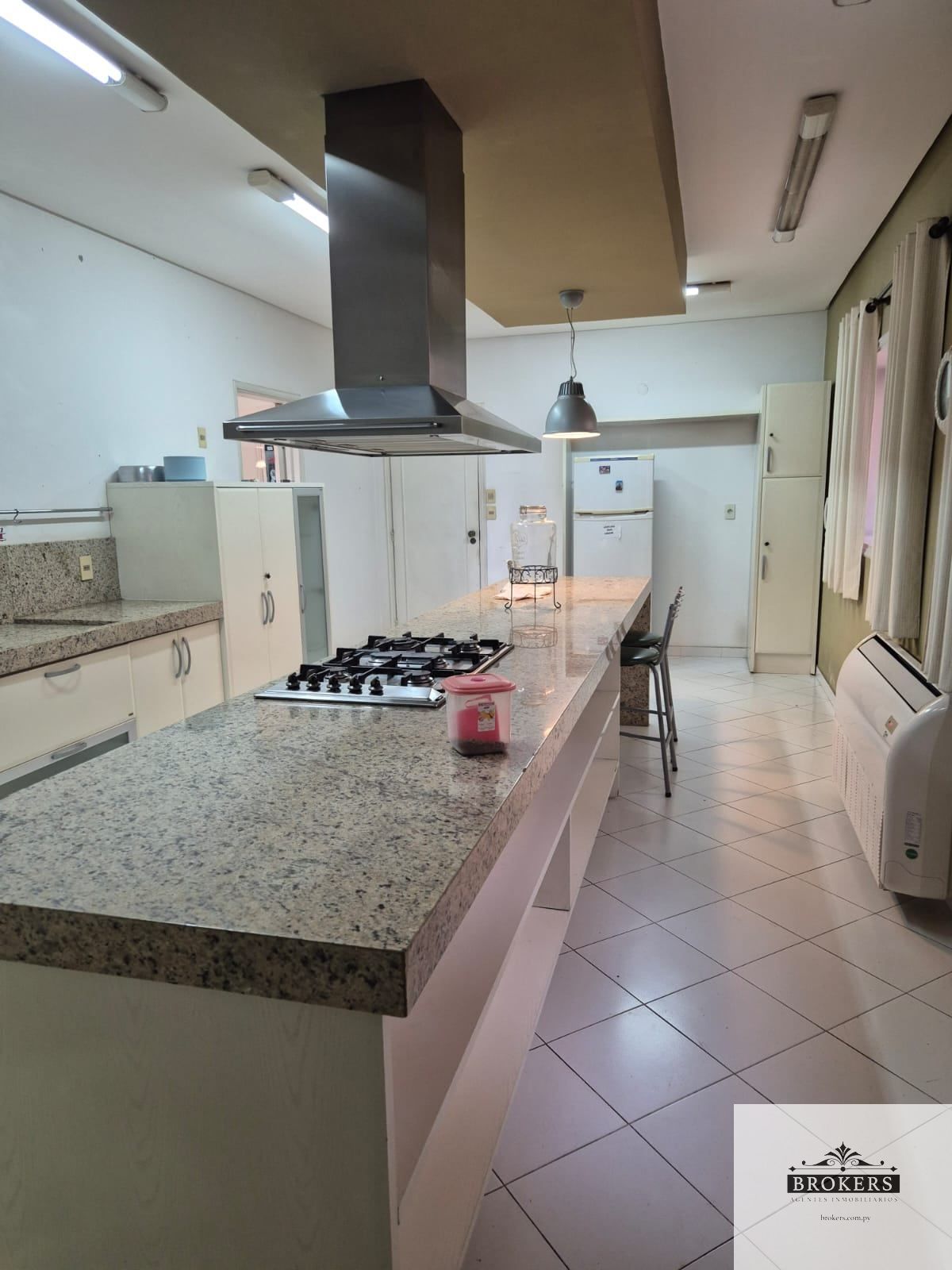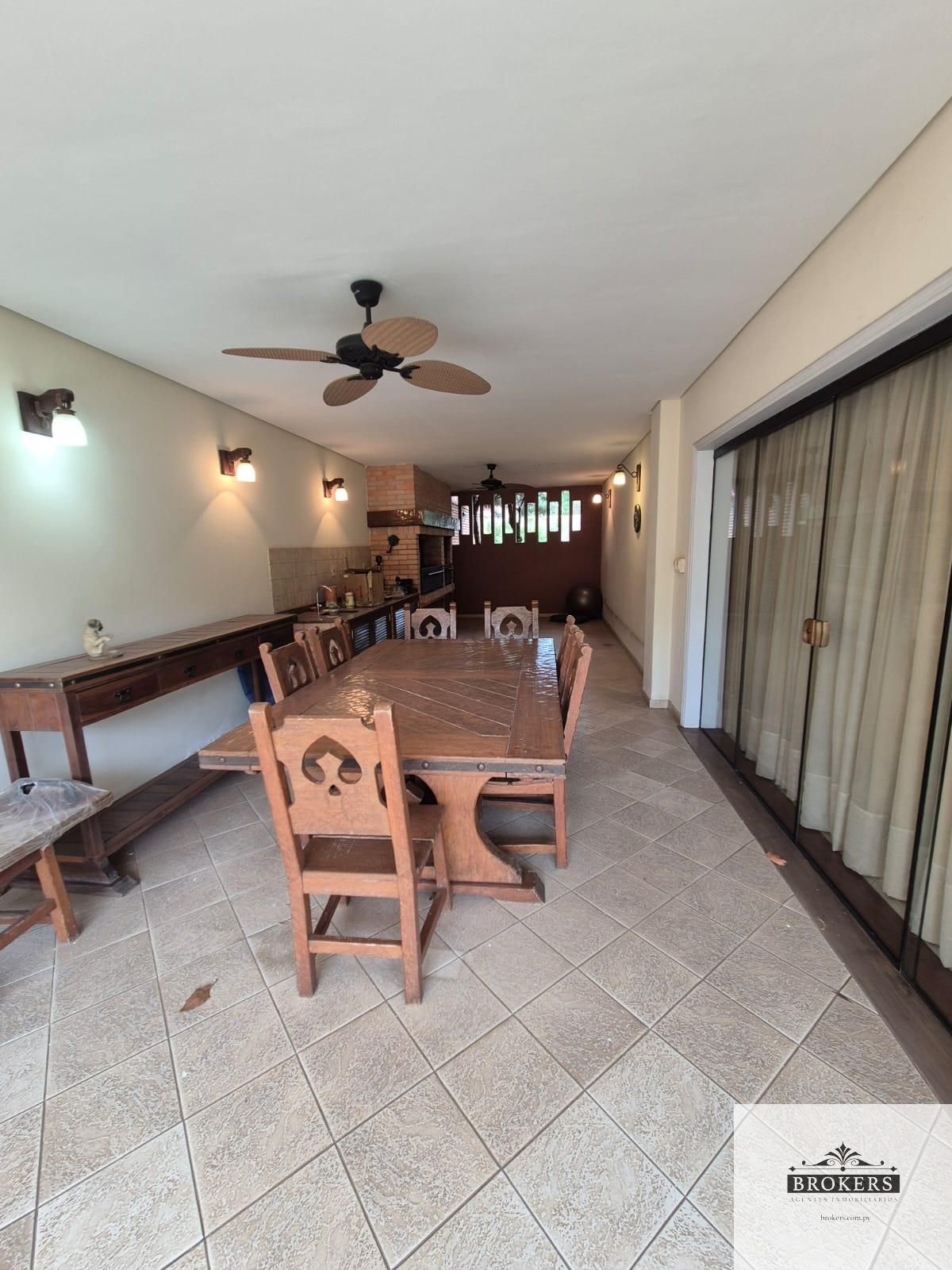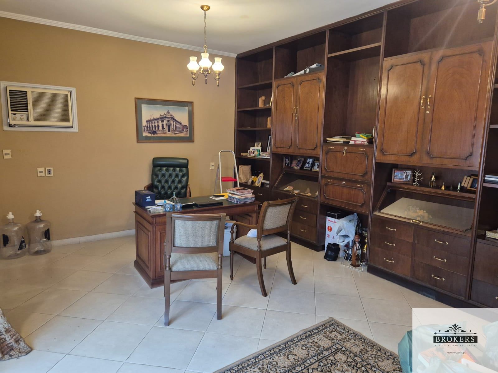Planta Baja: Escritorio, Sala de estar social, Comedor social, Comedor diario, Baño social, Cocina con isla y a/c, Patio con piscina, Baño, Quincho con parrilla techado, Habitación de servicio con baño, Lavadero techado y abierto, entrada al area de servicio independiente, Estacionamiento para 6 vehículos.