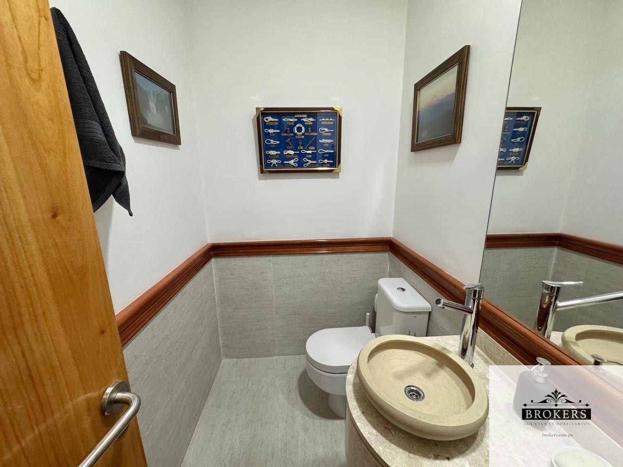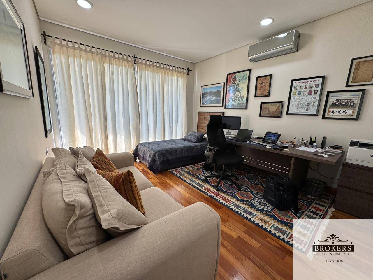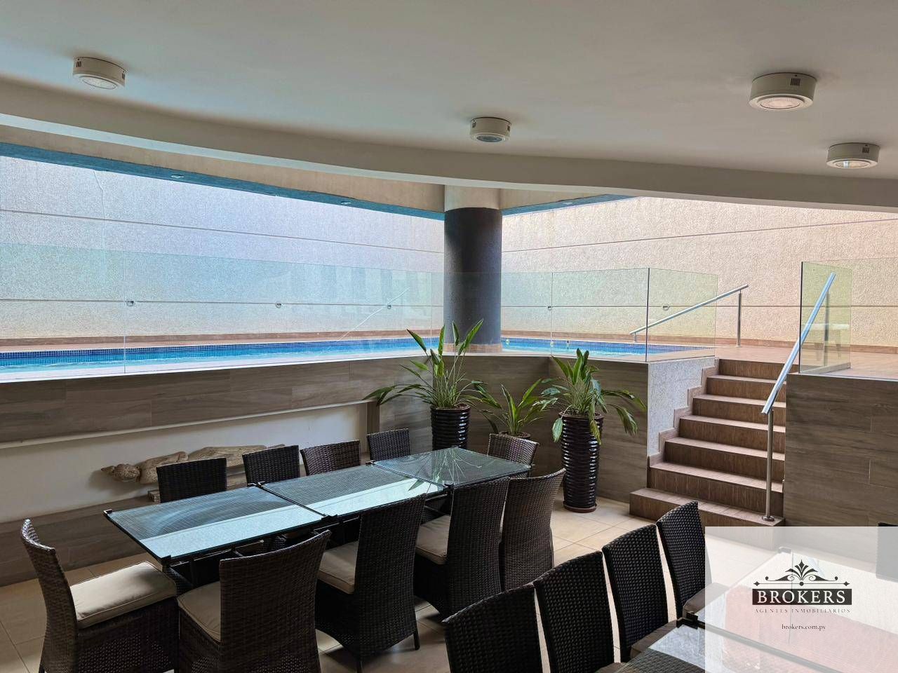 Espacios de amenidades: Elegante recepción con piano, Sala de reuniones con kitchenette propia, Salón de eventos para 150 personas, Piscina climatizada, Quincho con parrilla, Play Room, Gimnasio