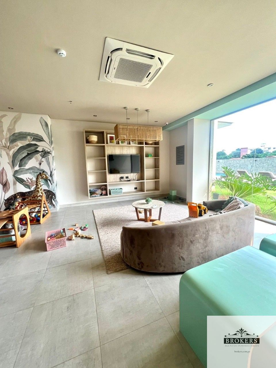 Amenities: Coworking, Sala de tv, Sala timba, Gym, Salon de eventos con cocina (30 personas), Quincho gourmet con parrilla, Kids club, Parque de juegos, Piscina, Área para personal de servicio en planta baja, Pet friendly, Porteria 24 hs.
