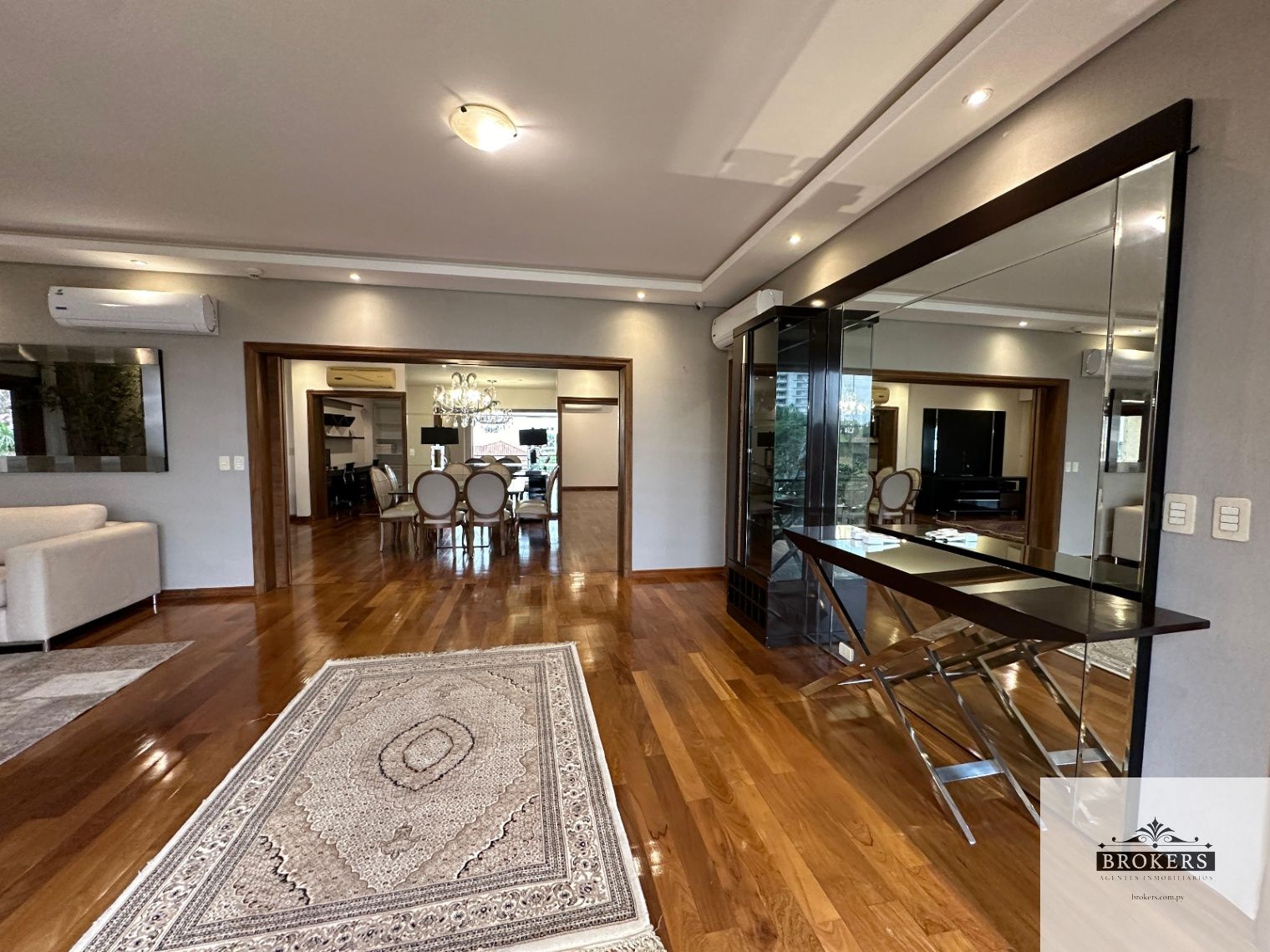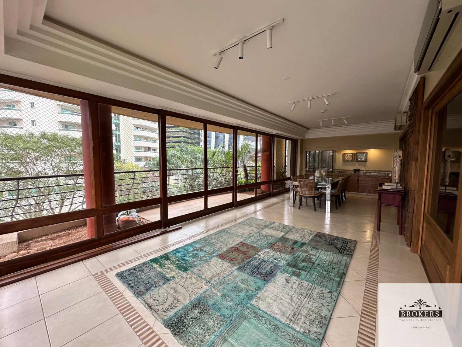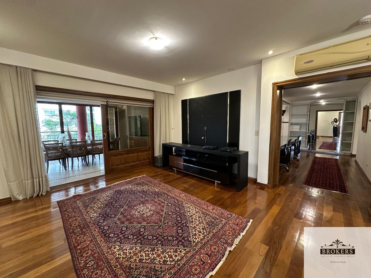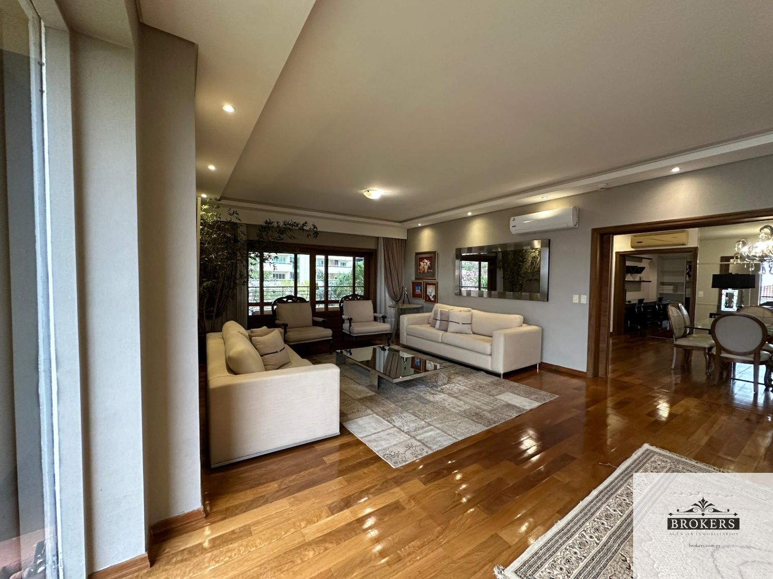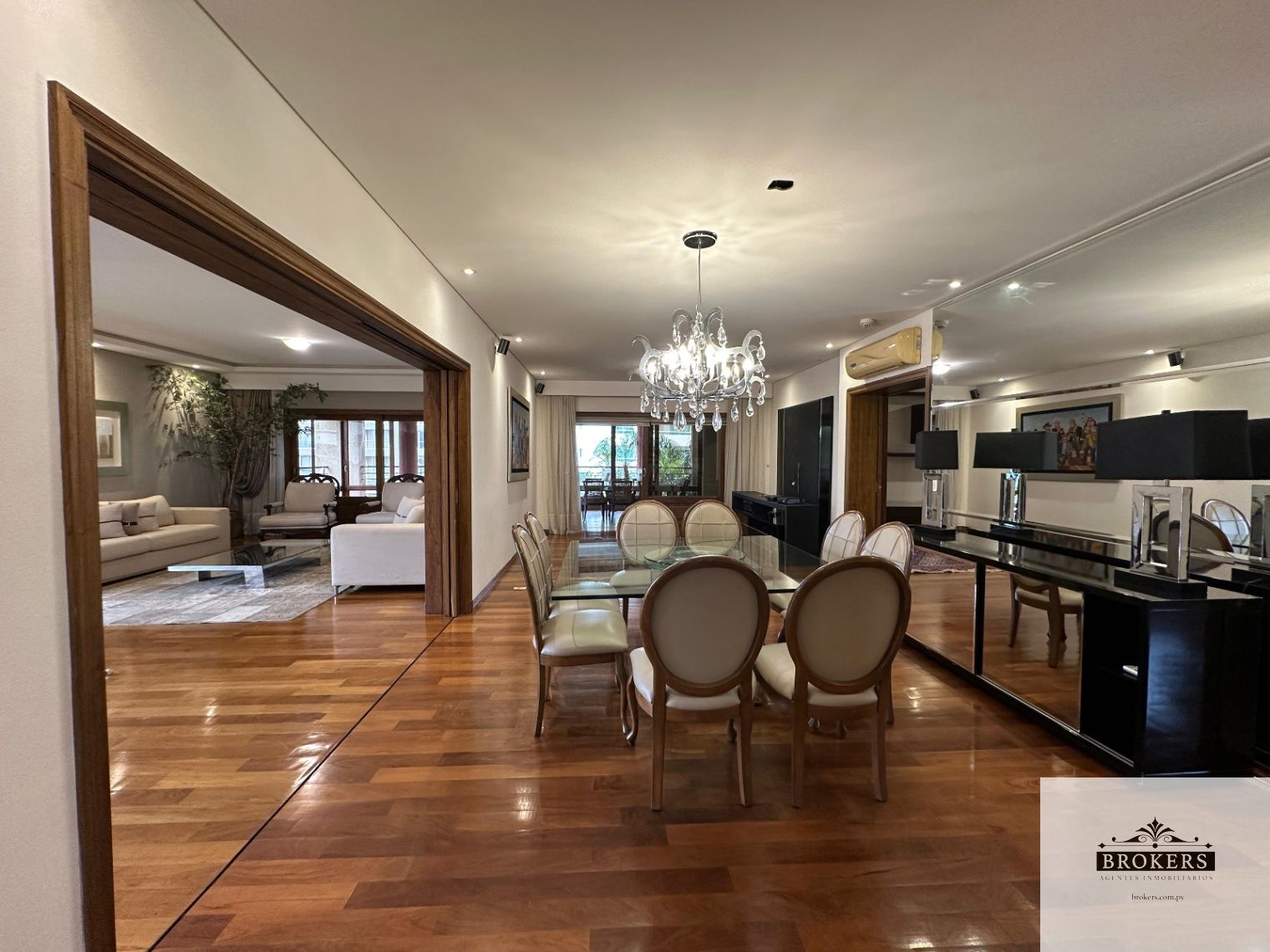 Palier privado, amplio living social, comedor y espacio para estar de TV, quincho cerrado con parrilla, escritorio, baño social, amplia cocina, lavadero con dormitorio y bano de servicio, 2 dormitorios en suite amoblados 1 de ellas master suite con gran vestidor) y espacio para un 3er dormitorio o estar íntimo.