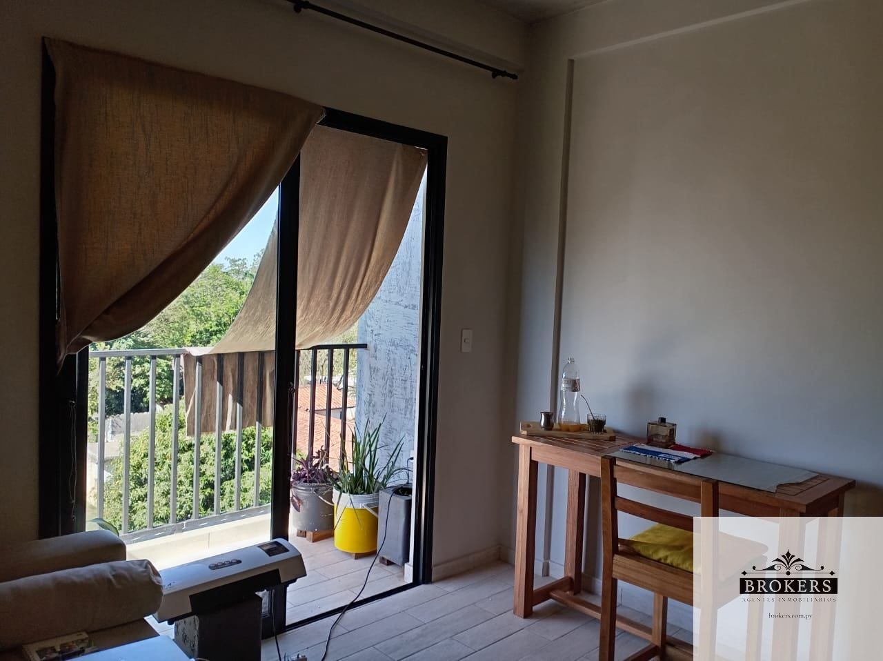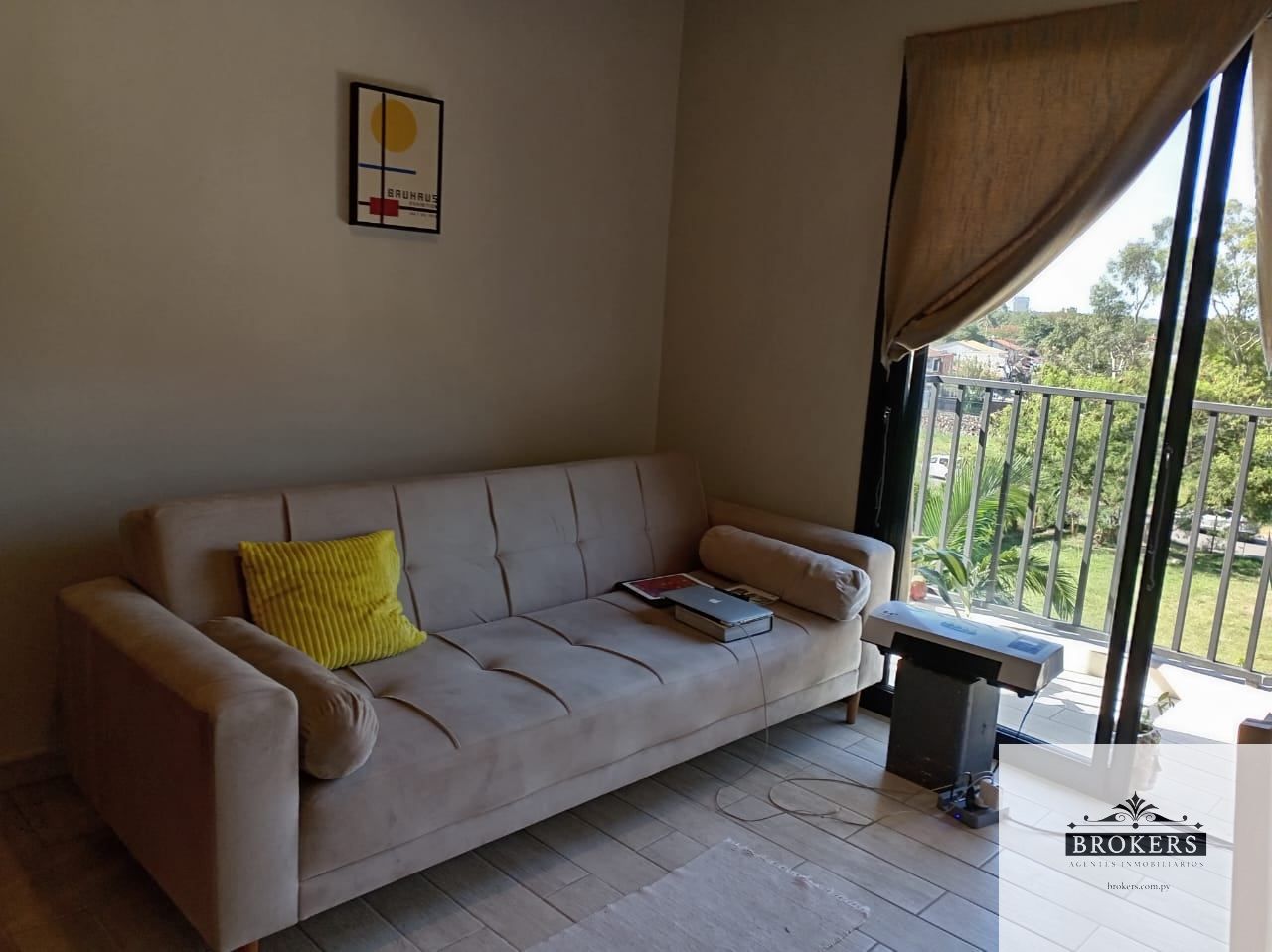 Confortable monoambiente con balcón con una vista verde preciosa en el tercer piso.