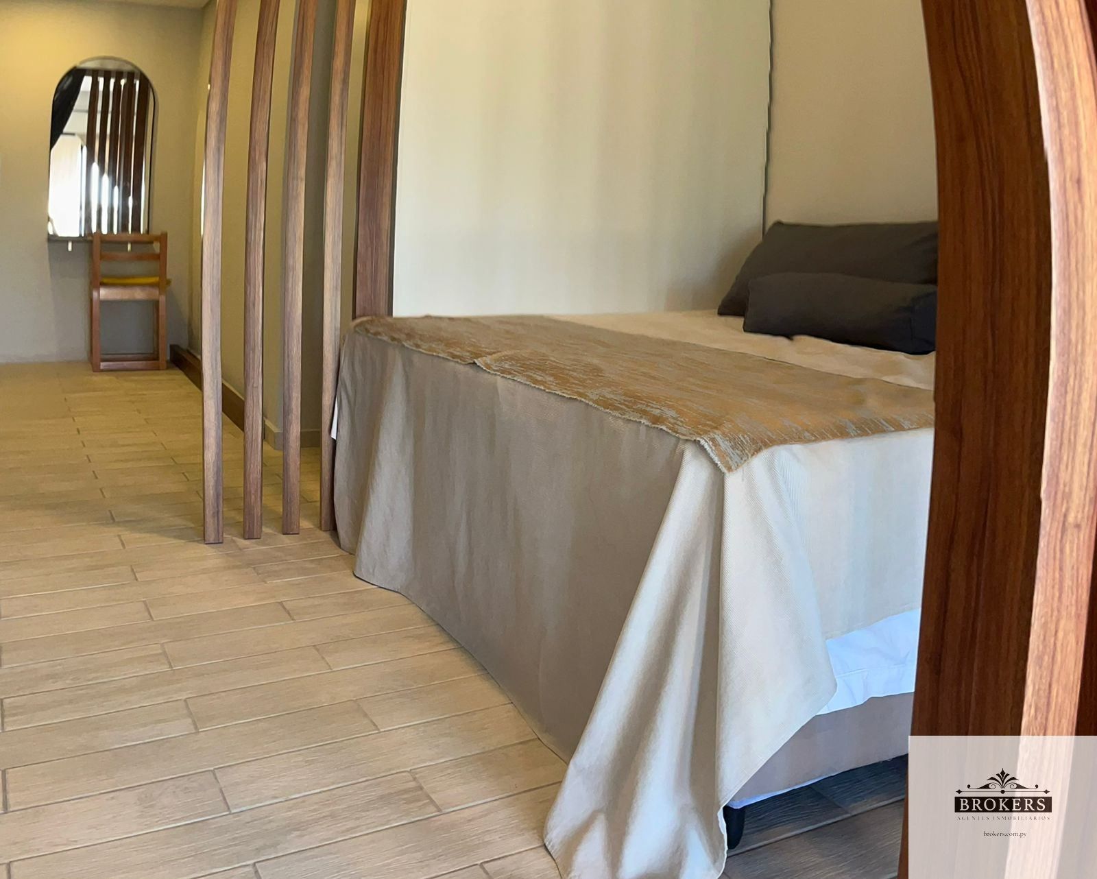 El precio incluye el somier, la heladera, lavasecarropas, espejos y heladera. Además incluye los separadores de ambientes móviles y el aire acondicionado.