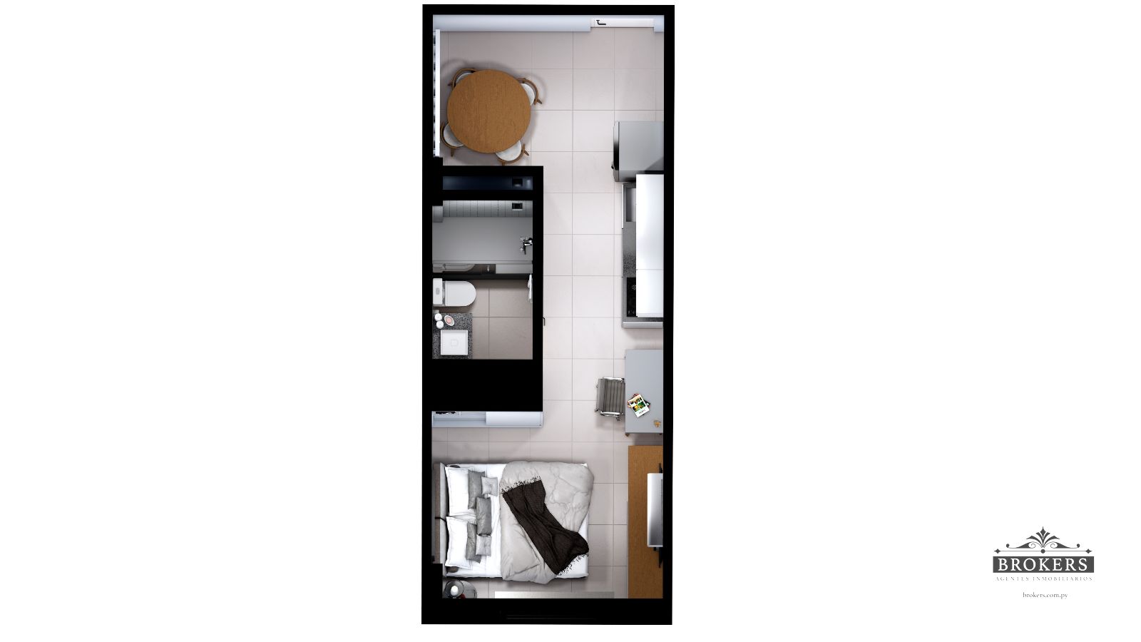 Cada monoambiente cuenta con: Área de cocina integrada, Espacio flexible para sala y dormitorio, Baño privado.