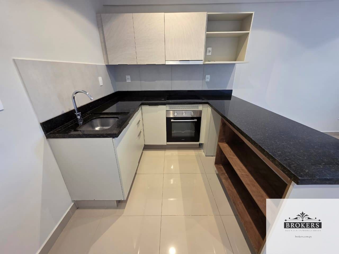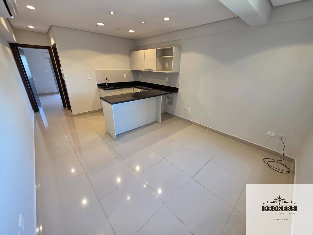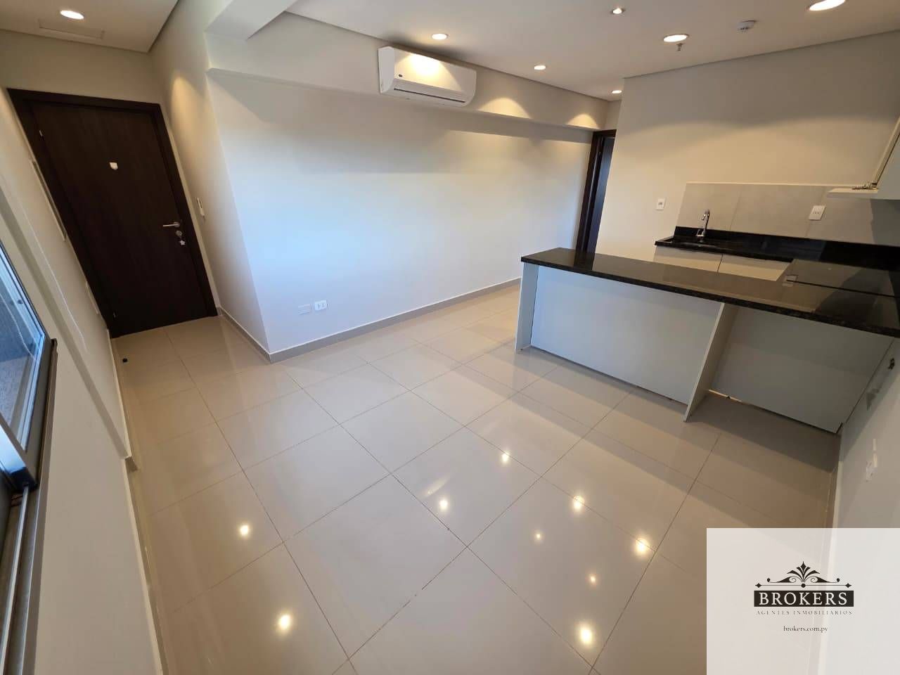 Sala–comedor, Cocina integrada equipada (anafe, horno y extractor) con mesada de granito, Balcón con buena iluminación, 1 dormitorio cómodo, Baño social/familiar, Aire acondicionado en todos los ambientes, Incluye 1 cochera.