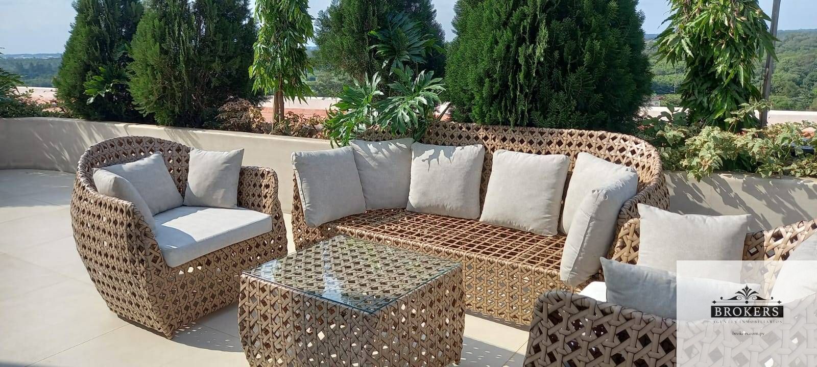 Piscina, amplia terraza con plantas y amoblado para un momento de relax.