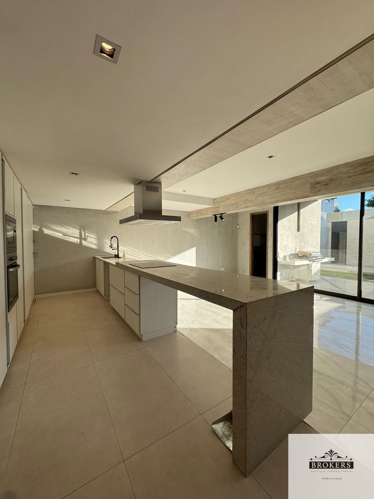 Cocina 100% equipada, con línea blanca empotrada, Isla central en piedra natural,