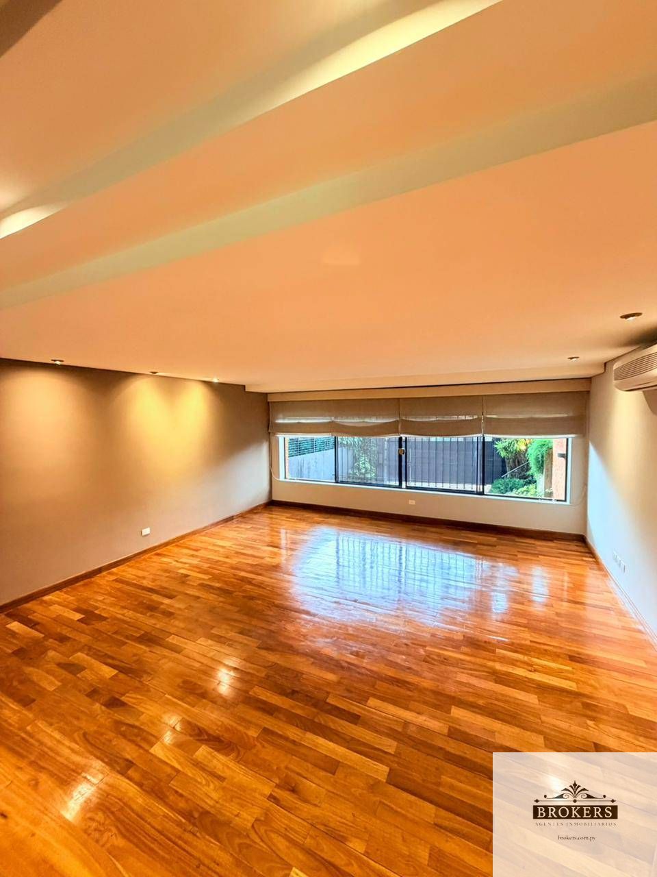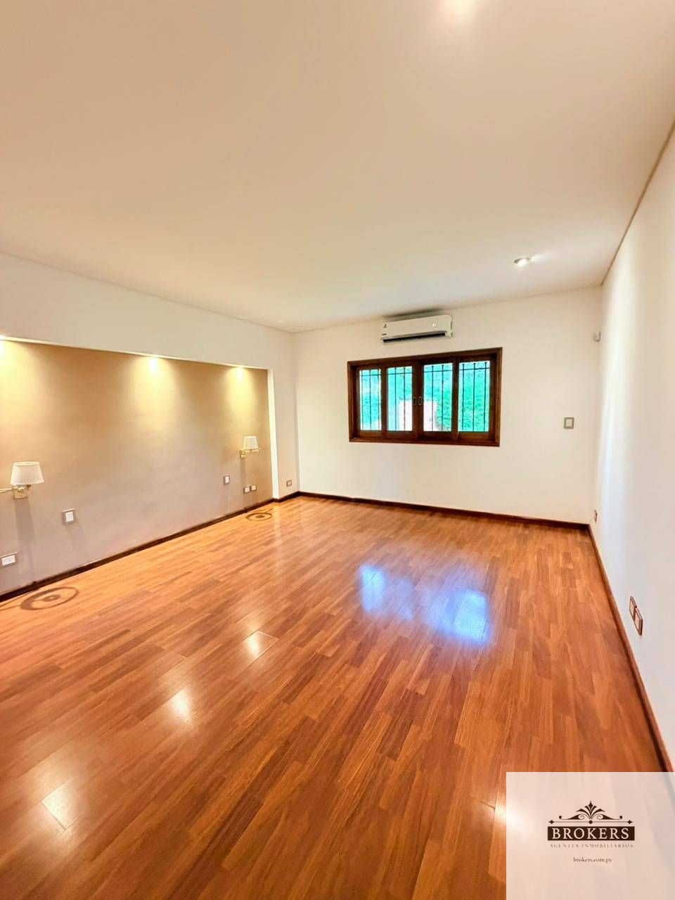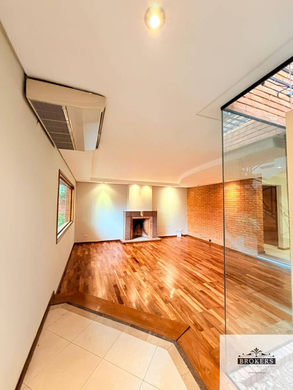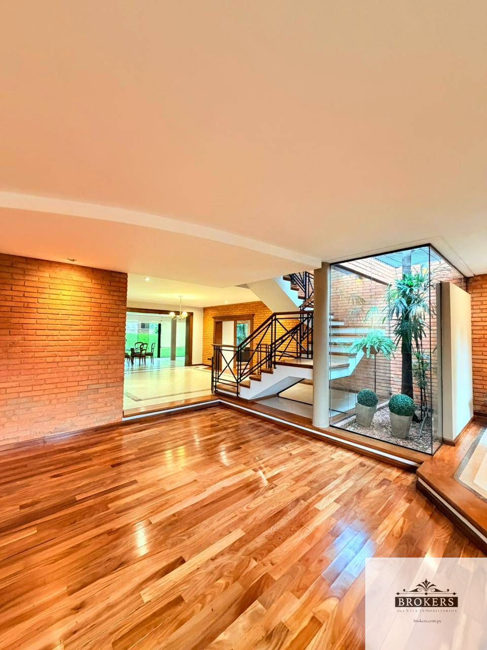 Planta Baja: Área social: sala de estar con piso parquet de madera yvyrapyta junto a patio interior, comedor social, segunda sala muy amplia también con piso