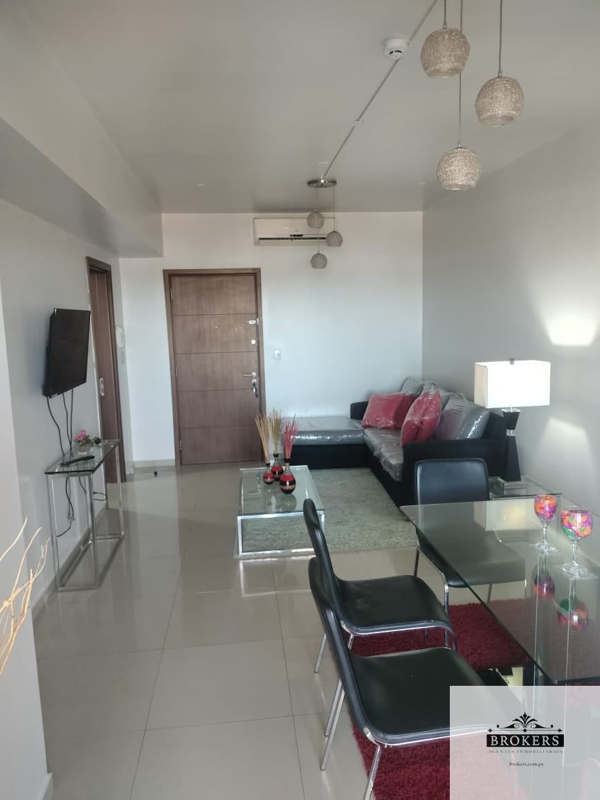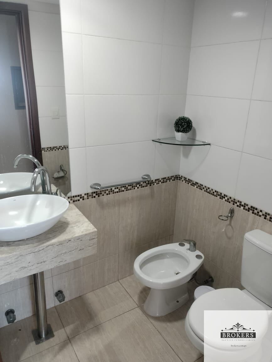 El departamento totalmente amoblado y equipado con electrodomésticos cuenta con dos dormitorios uno en suite todo equipado con aires.