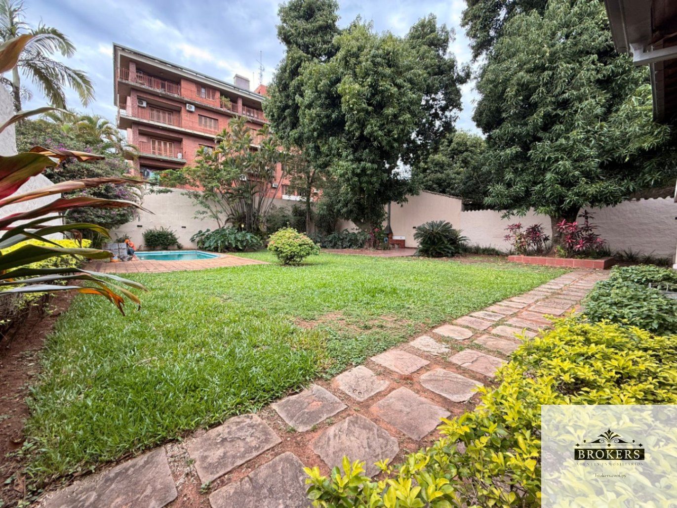– Jardín con piscina