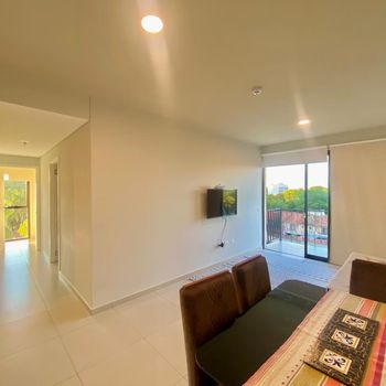 El departamento cuenta con sala y comedor integrados, Balcón con parrilla, 2 dormitorios, 2 baños