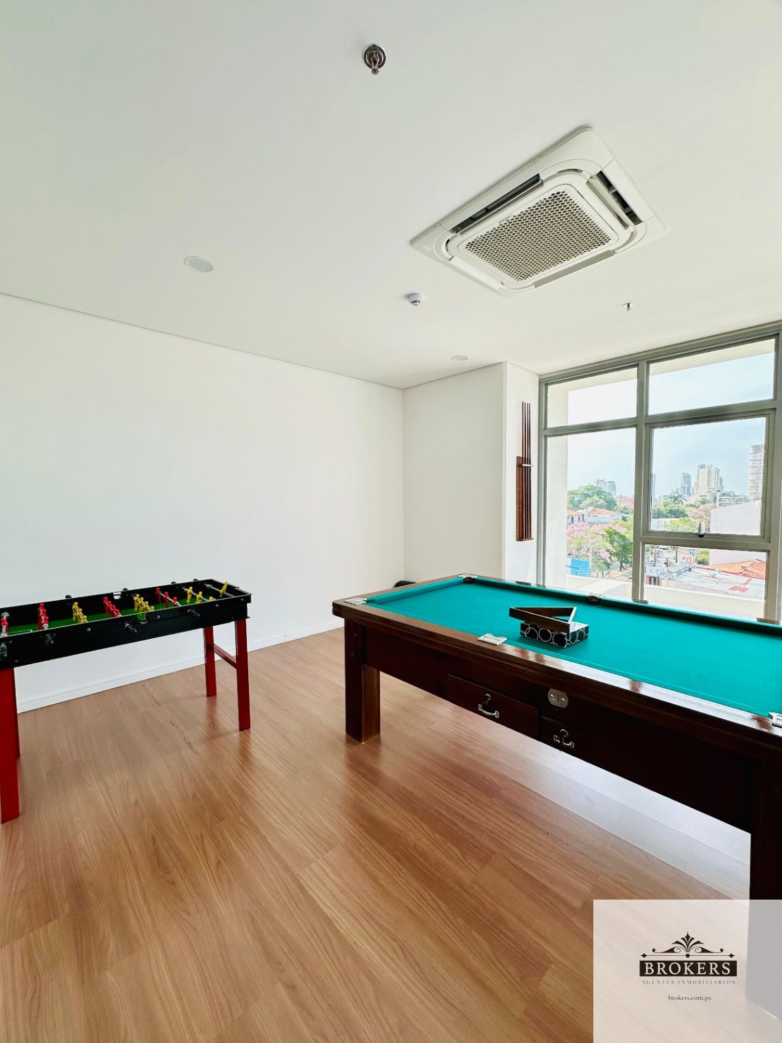 salón climatizado con quincho, área de juegos, piscina