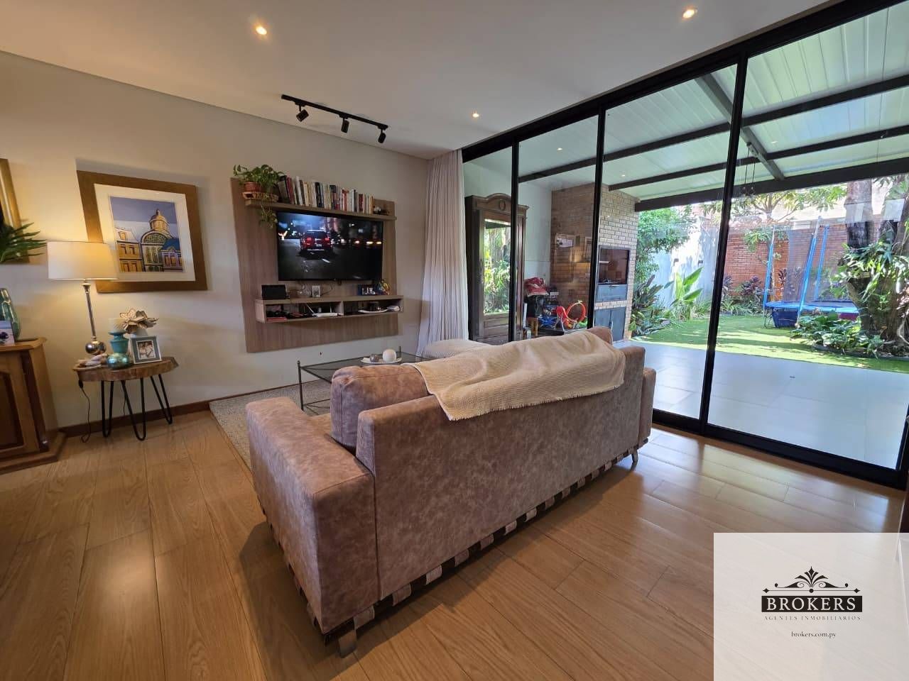 Planta Baja: Cochera para 2 vehículos, Living comedor social, Baño social, Cocina integrada, Galeria con parrilla, Hermoso jardín, Area de servicio con lavadero, dormitorio y baño.