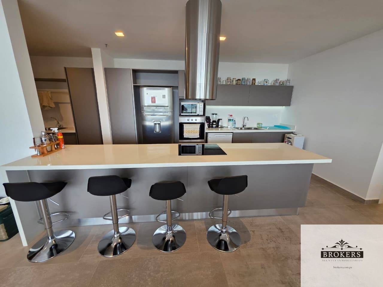 Comodidades: Sala comedor, baño social, cocina integrada con lavadero, amplio balcón con parrilla, 3 dormitorios, la principal en suite con vestidor, 2 comparten un baño familiar, todos los dormitorios tienen salida al balcón, el depósito o habitación de servicio con baño está ubicada en planta baja, incluye 2 cocheras.