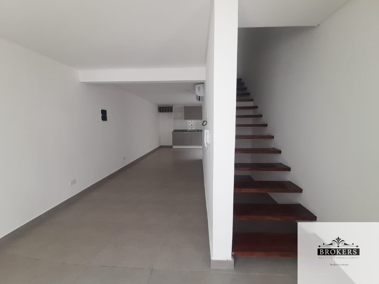 Cuenta con Sala comedor, cocina amoblada y equipada con anafe, extractor, horno eléctrico, patio con parrilla, cochera para 2 vehículos bajo techo