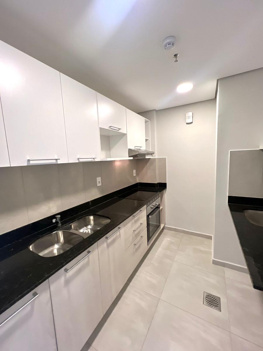 Sala comedor con balcón, cocina amoblada con anafe, purificador, horno eléctrico, integrada con lavadero, baño completo, dormitorio con placard, y dormitorio principal en suite con un amplio placard, mucha iluminación natural, fina terminación.